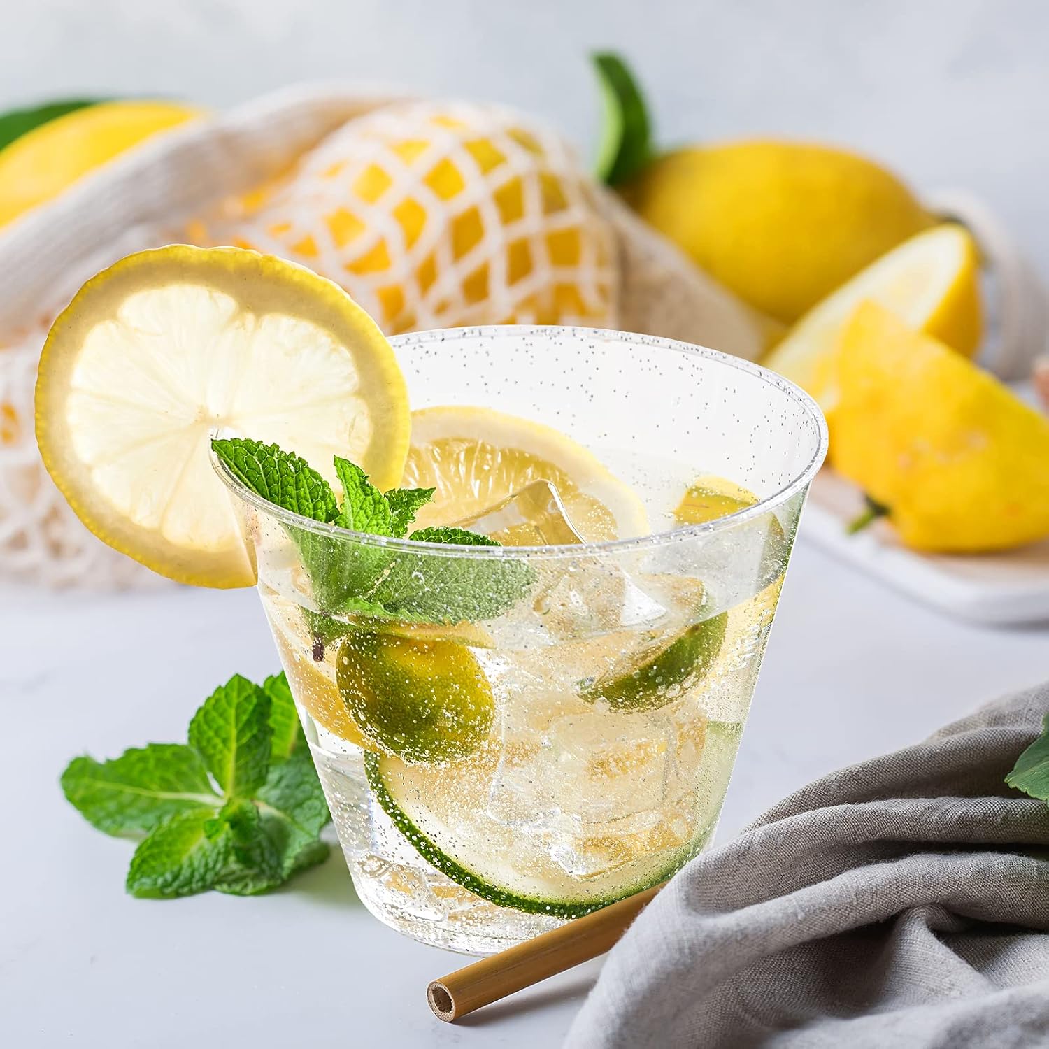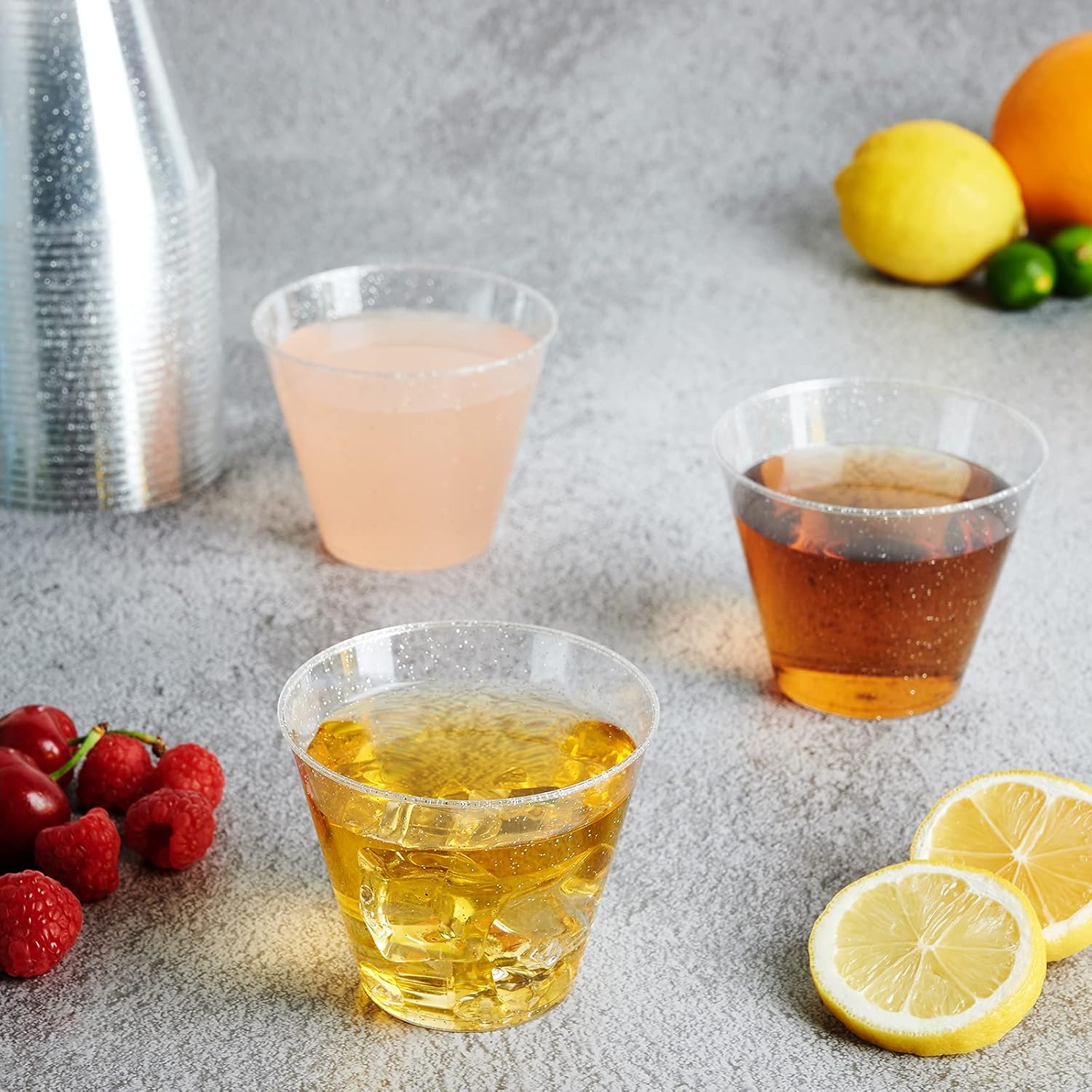 • 【Fancy & Elegant】The plastic cups are full of silver sparkles, which can add a sense of sophistication to any table setting, 9 oz disposable cups with silver glitter can be matched with beverages of any color, making your party elegant and refined