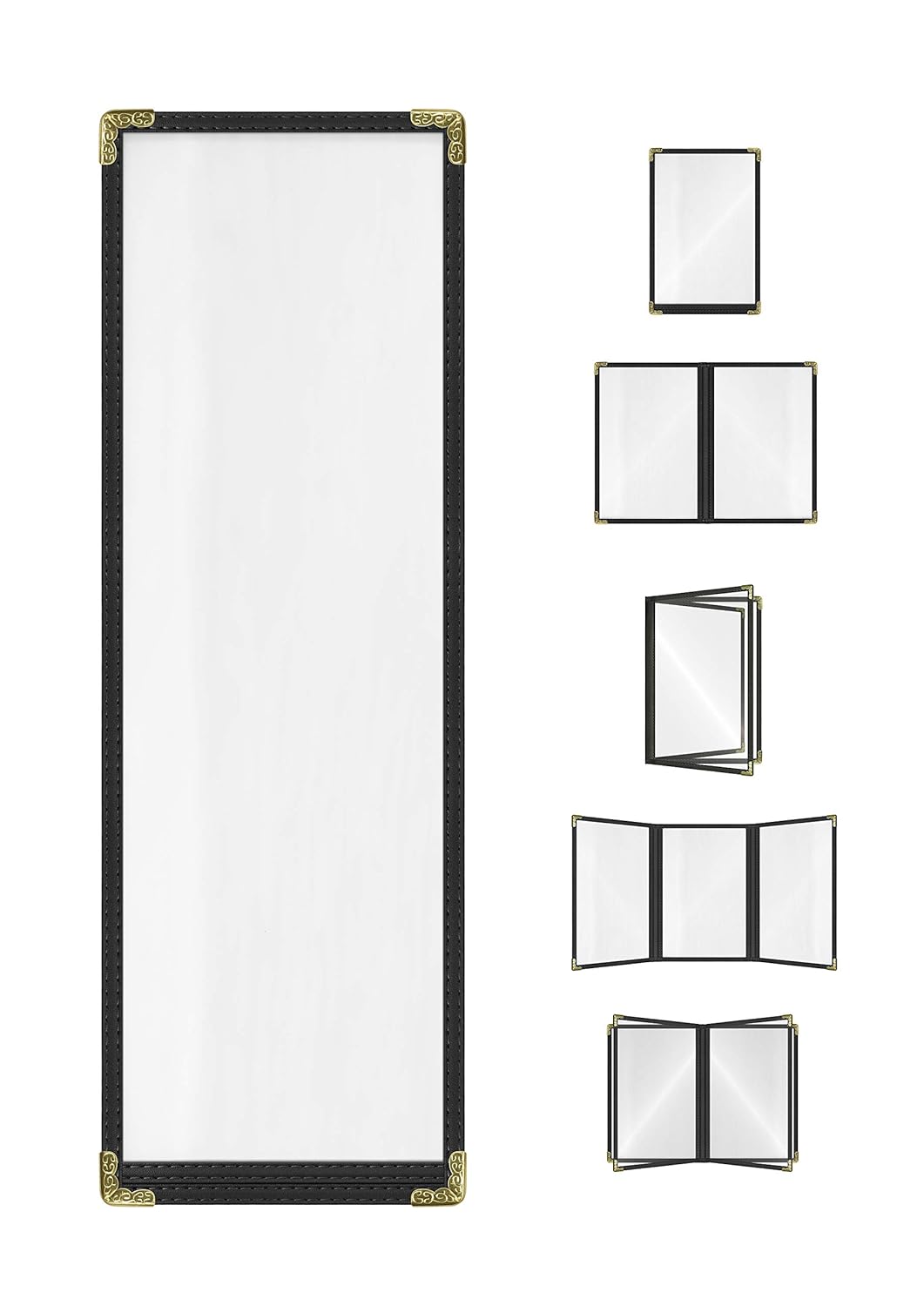 • High-Quality and Durable Construction: Made from crystal clear vinyl, these menu covers protect your pages from spills, stains, and everyday wear while maintaining vibrant visibility. The black double-stitched edges ensure durability, and the gold decorative corners enhance the professional and polished look.