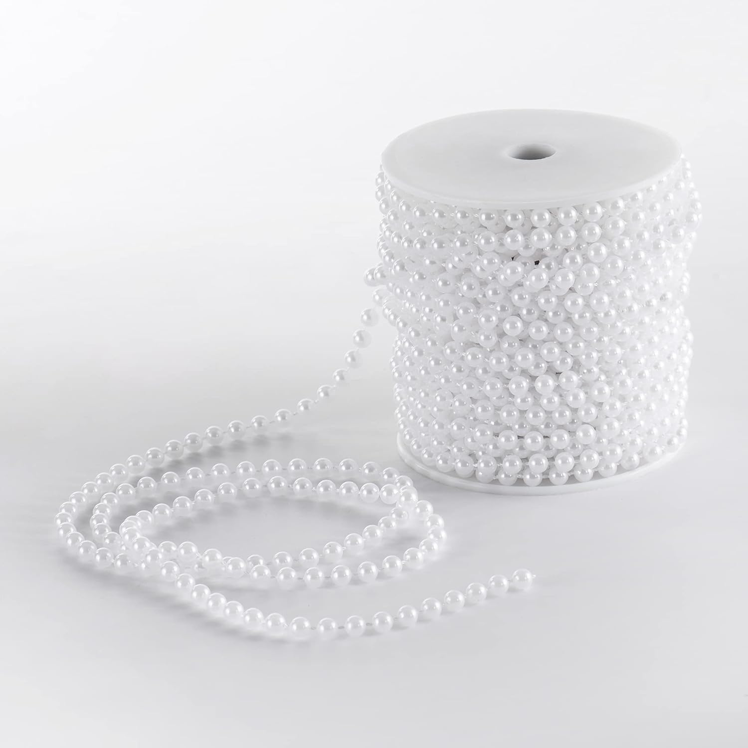 Craft String Pearls 6MM Pearl Bead, 66 Feet White Faux Pearl Garland Spool Roll Strand Wedding Party Decoration, Christmas Tree Decorations