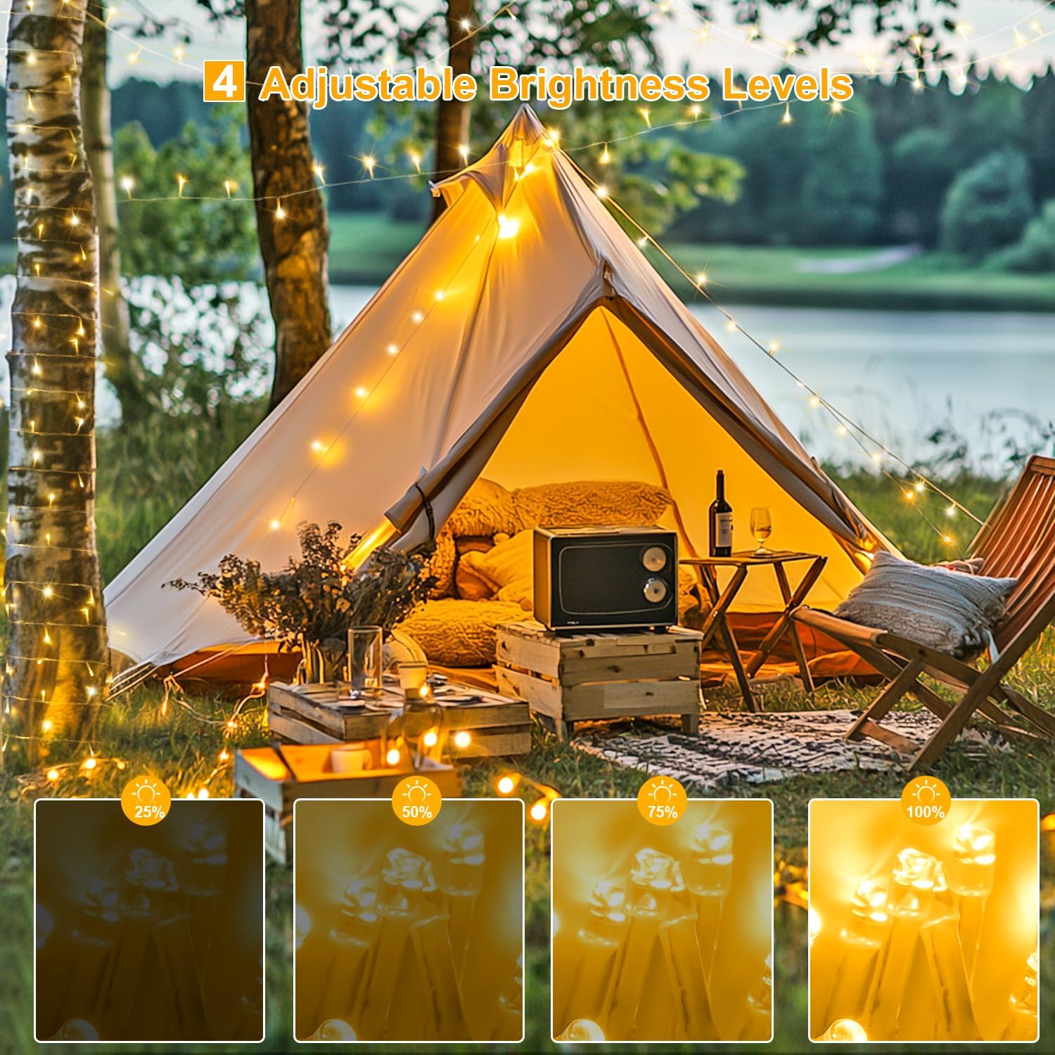 • 【Storage Wheel Design & Outdoor Use】Our outdoor String Lights more right for outdoor use and daily decorations. The reel which made it easy to put up and take down. And it ensure the lights won’t get all tangled up while unrolling a few feet at a time. In the next festival or party you can easily use them again. The outdoor Christmas string lights are perfect for both indoor and outdoor use as the waterproof feature (Note: The transformer is NOT waterproof, please place it in a dry place.)