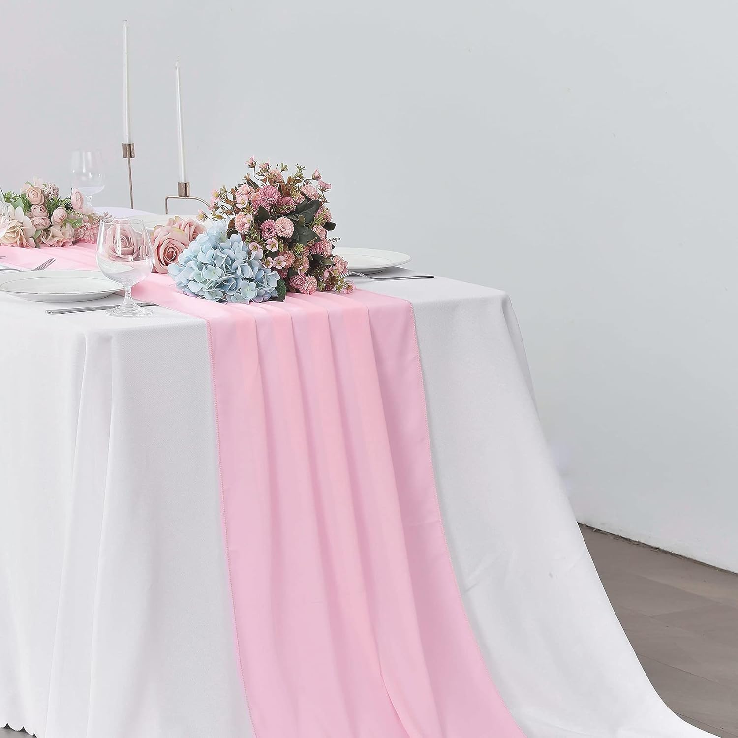 5 Pack 10Ft Pink Chiffon Table Runner Sheer 29x120 Inch for Romantic Wedding Decor Bridal & Baby Shower Birthday Rustic Party Decoration