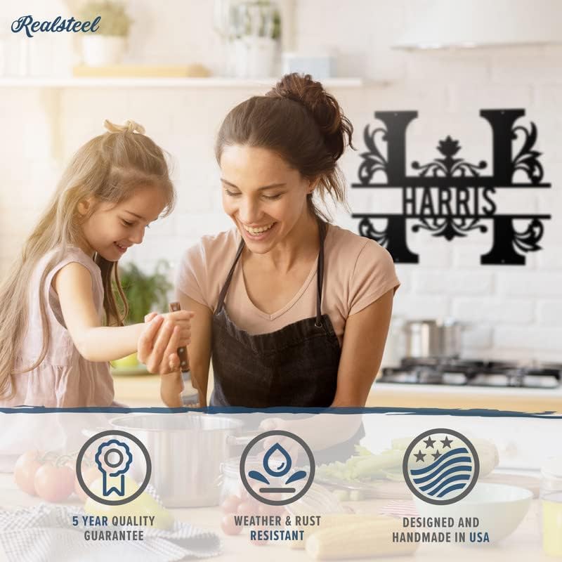 RealSteel Metal Split Letter Monogram โ€“ Personalized Last Name Sign for Home & Outdoor Dรฉcor โ€“ Custom Metal Wall Art โ€“ Family Name Sign, Welcome Sign