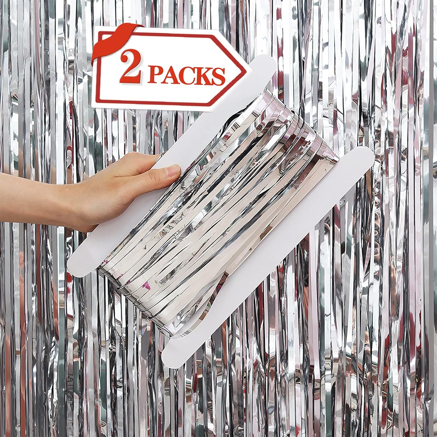 • What You Get: 2 pcs 3.28ft x 6.56ft (1mX2m) Tinsel foil fringe curtain/backdrops, enough length for decorate your party