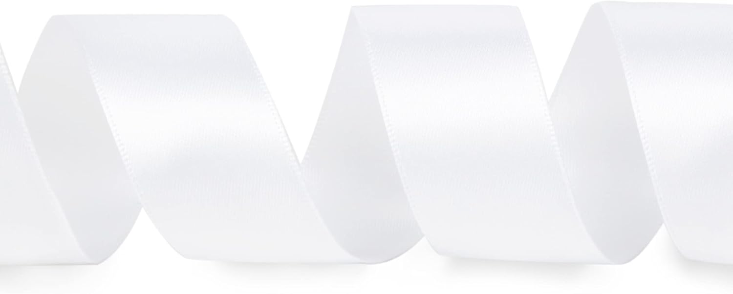 Ribbli Double Faced White Satin Ribbon,1” x Continuous 25 Yards,Use for Bows Bouquet,Gift Wrapping,Floral Arrangement
