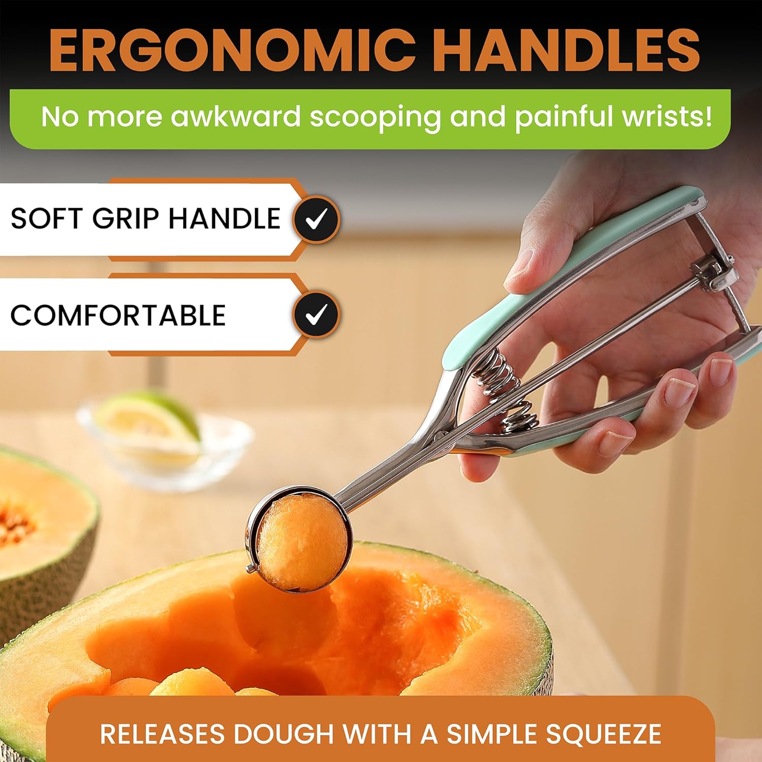 Spring Chef - Mint Small Cookie Scoop for Baking, Multifunctional #60 Melon Baller with Trigger Release for Watermelon, Ice Cream, Protein Ball, Stainless Steel Scooper, 1 Tbsp Cookie Dough Scoop