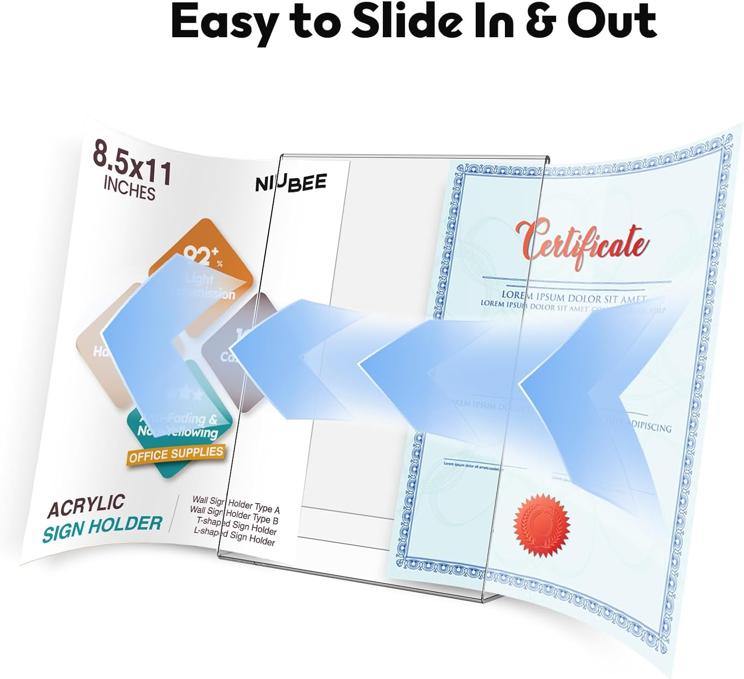 • MULTIPURPOSE USE - NIUBEE clear plastic holders are perfect for displaying signs flyers, paper, images, brochures, ads in the office, hotel, library, school, church, restaurant, bar, conference, exhibition, fair, trade show, wedding events etc.