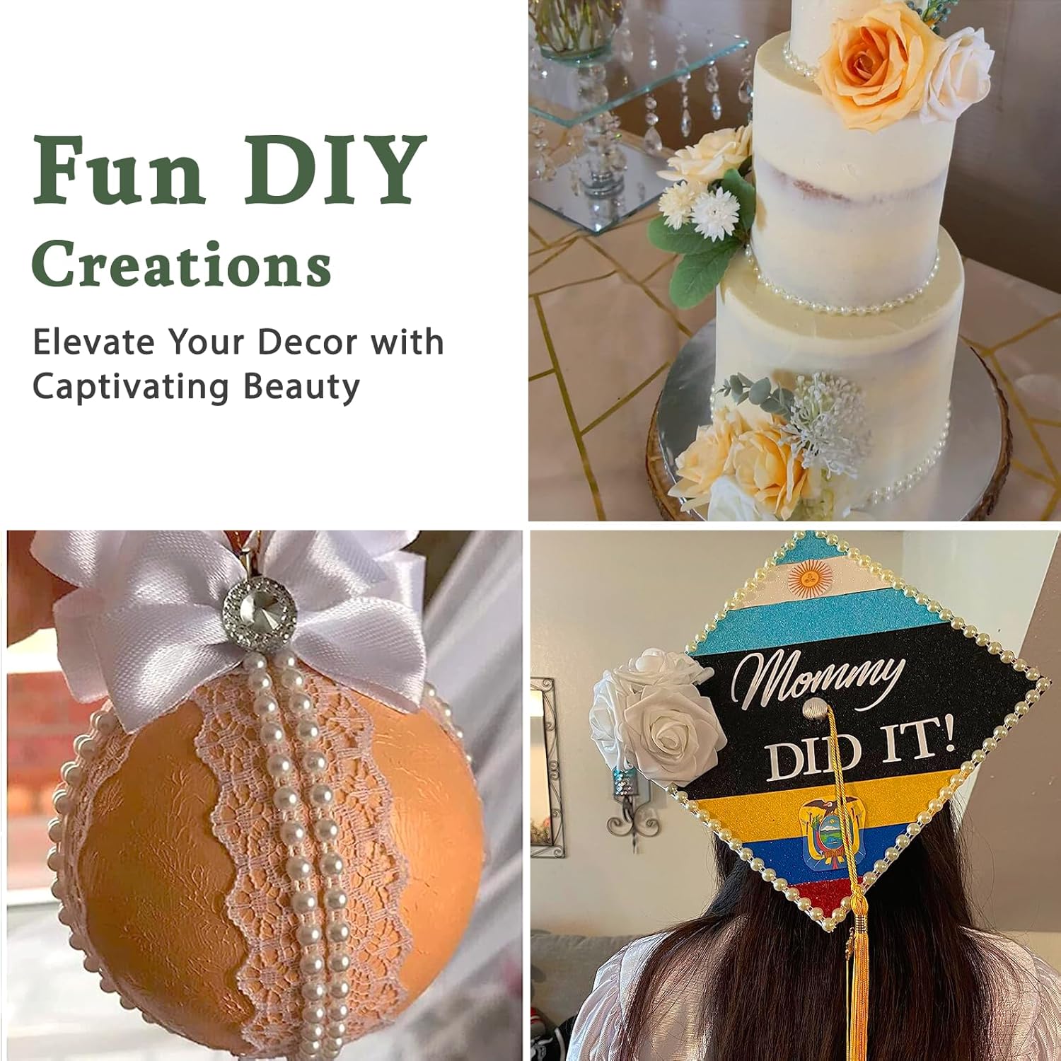 • Faux pearl garland: Add the elegance of faux pearls to your decorations, and add luster and charm to your handicrafts with this white beaded garland