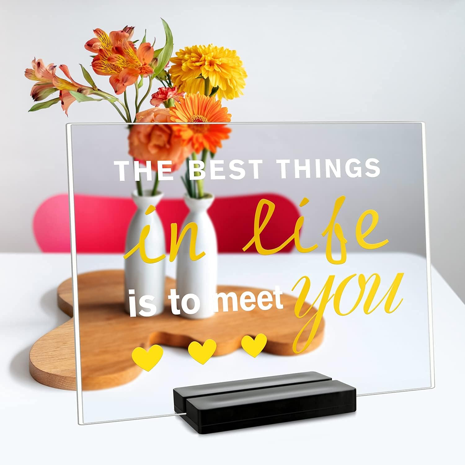 • Exquisite appearance: The noble black acrylic frame can accommodate 1/8 inch thick acrylic cardboard, which is very suitable for placing various table cards or wedding cards