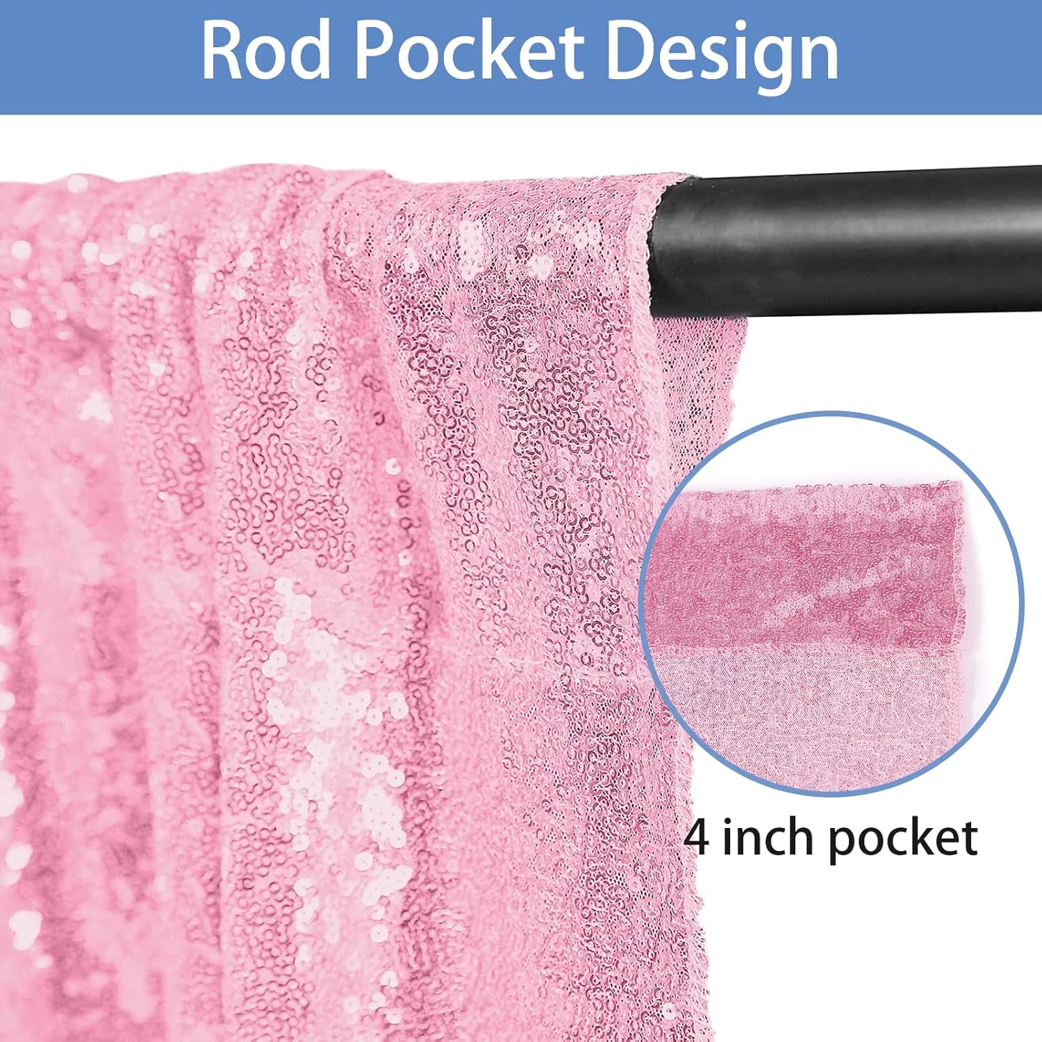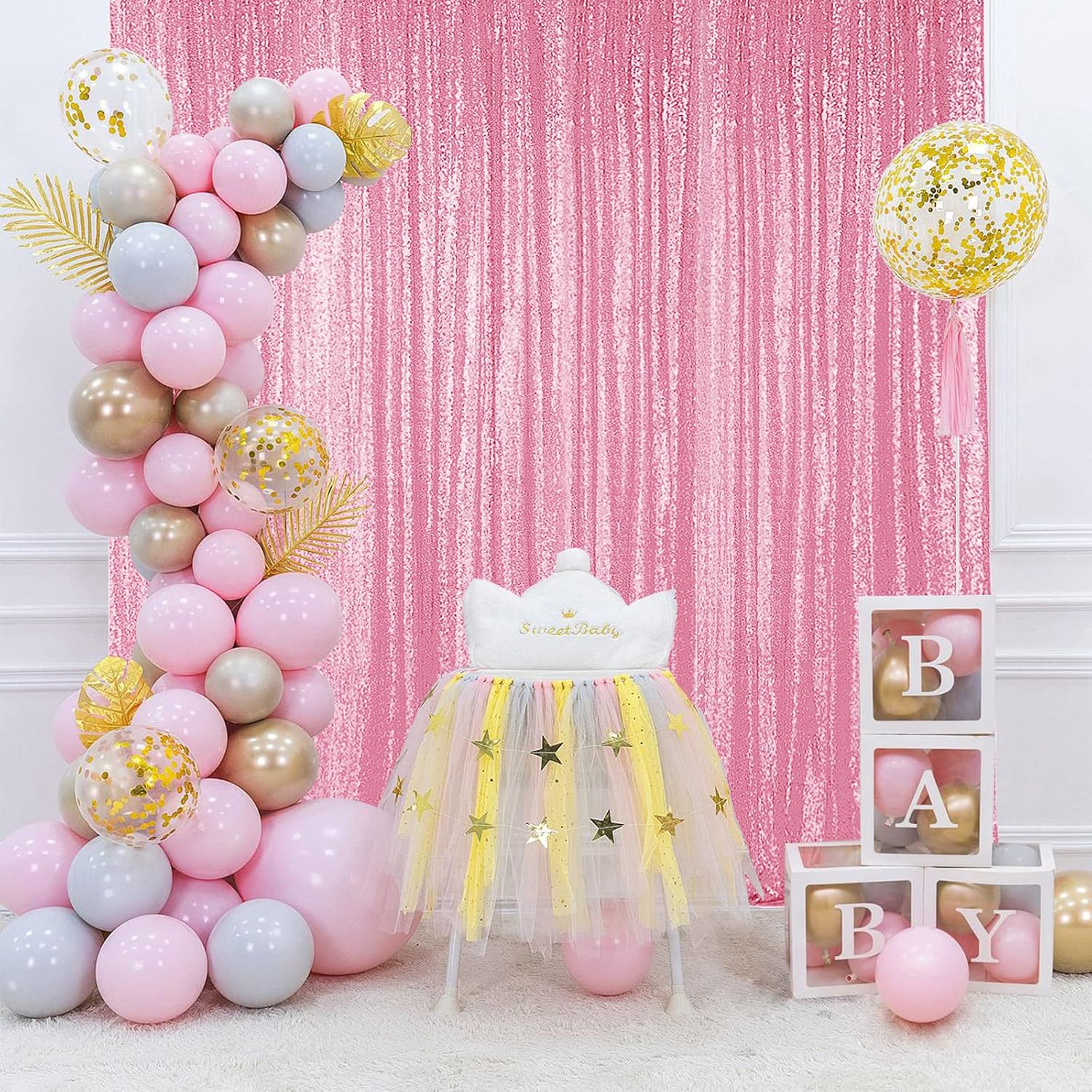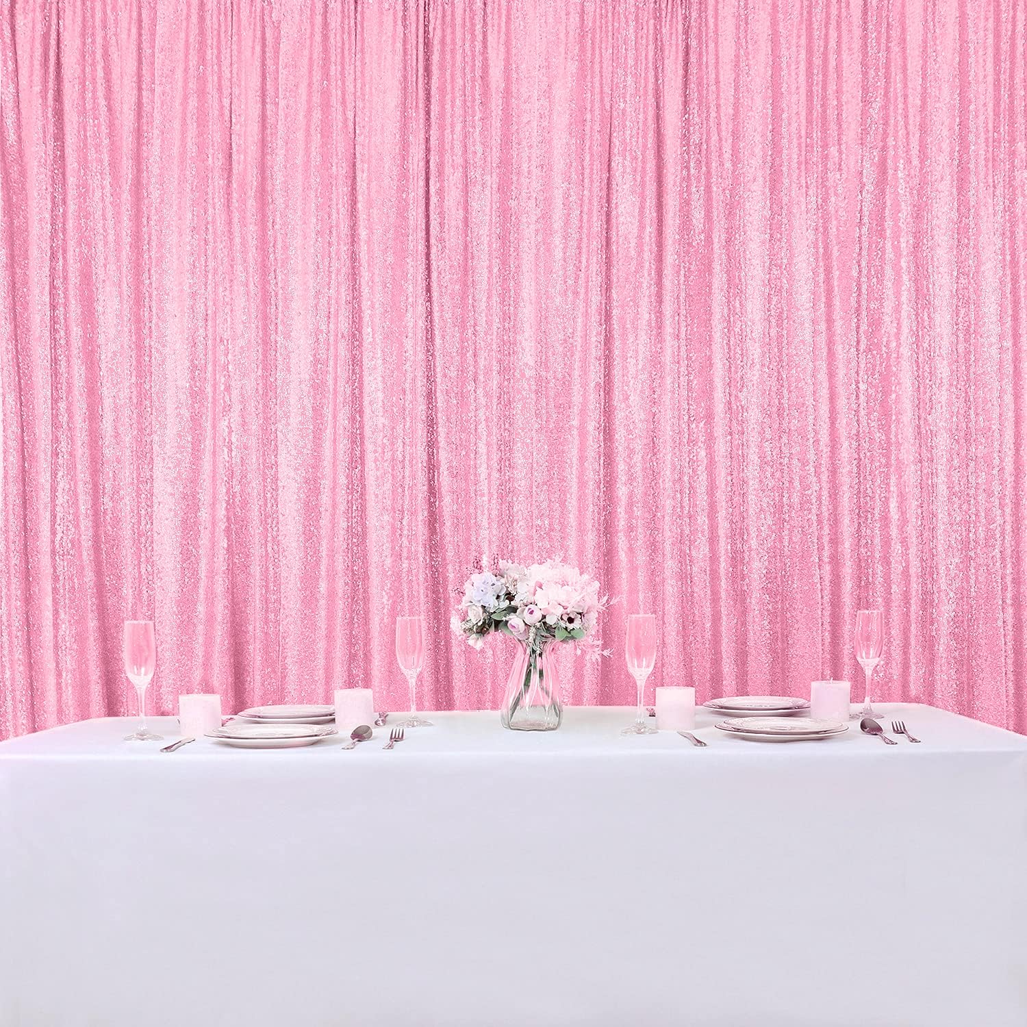 Hahuho Pink Sequin Backdrop Curtain, 4PCS 2FTx8FT Glitter Backdrop Curtain for Parties, Christmas, Wedding, Banquet Decoration(4 Panels, 2FT x 8FT, Pink)