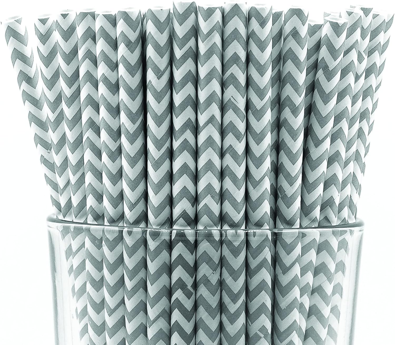 Pack of 900 Gray Chevron Biodegradable 4-Ply Paper Drinking Straws (Compostable, Non-toxic, BPA-free)