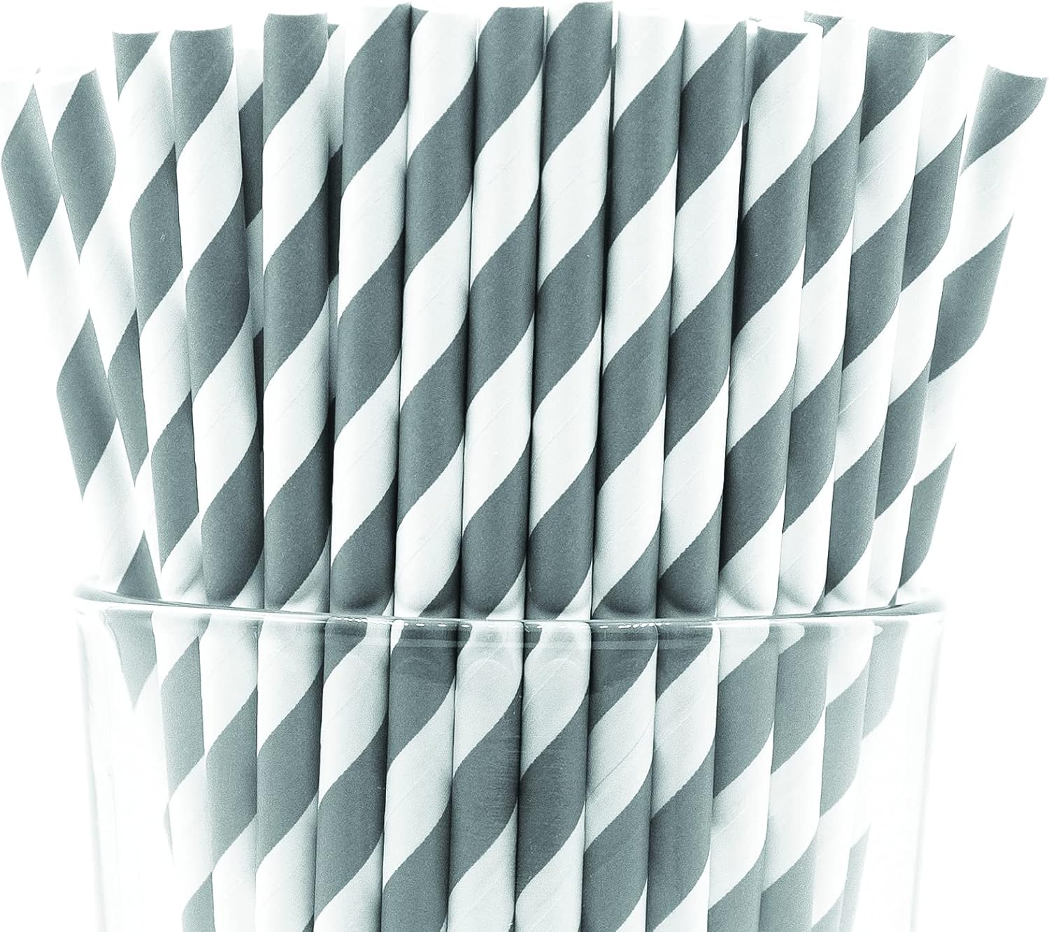 • Pack of 900 Gray Swirls wrapped paper straws that are 7.75” long and have a diameter of 0.25”. Made with 4-ply paper which translates into thicker and more resilient straws that won’t wilt or change shape in both hot and cold drinks.
