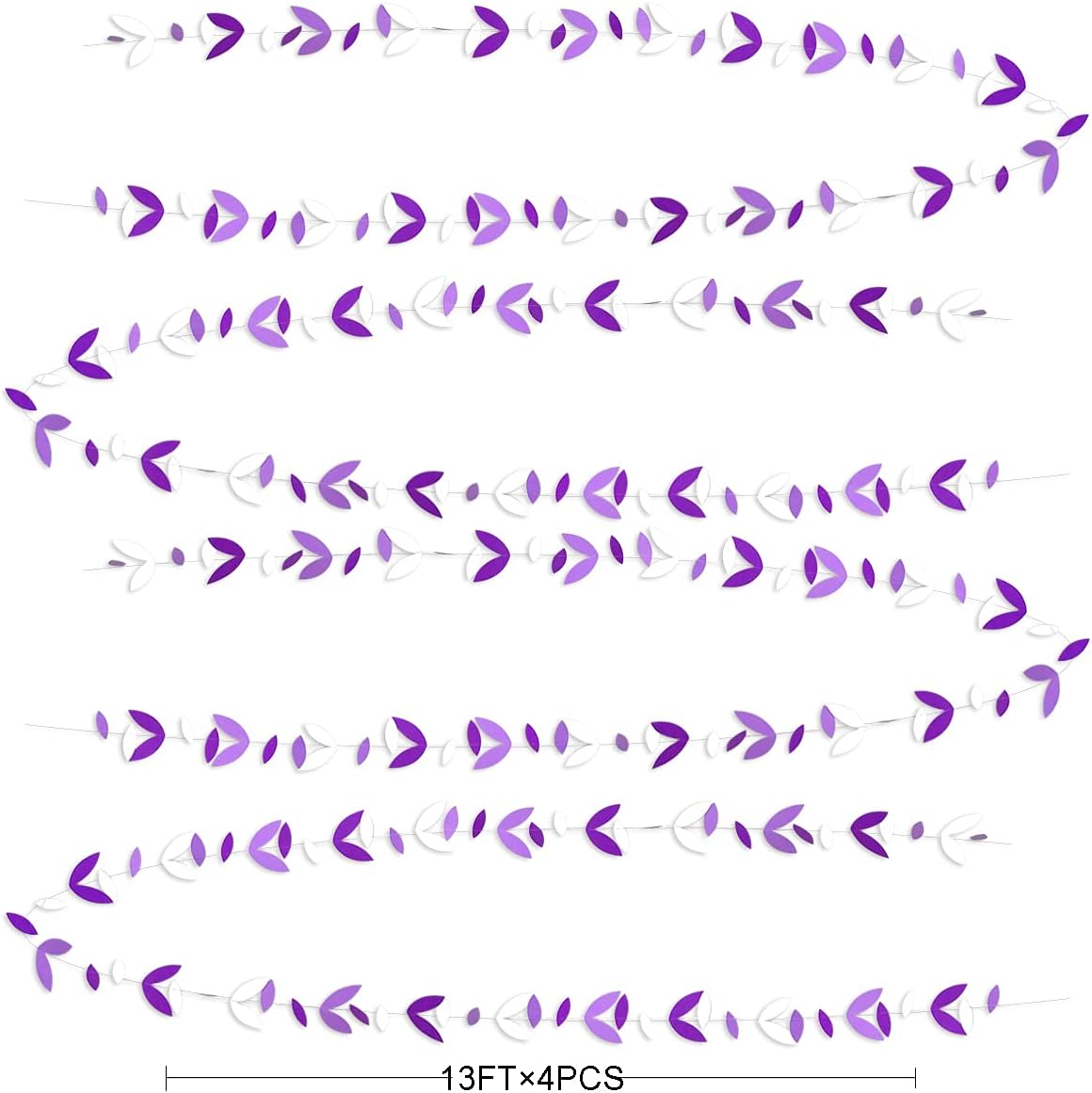 • 💜PACKAGE CONTAINS- 4 packs of white and lavender leaves party garland,each string is 13 feet/ 4 meters.Total length is 52 feet/ 16 meters.