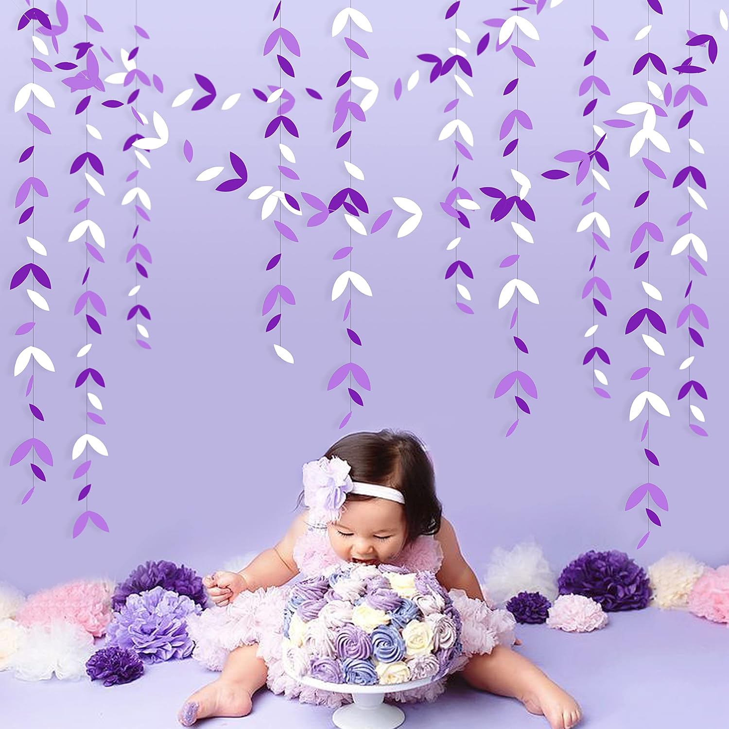 • 🤍HIGH QUALITY-Our purple lilac white backdrop leaf streamer garlands are made of double sided high-quality environmentally friendly materials-High quality cardstock,Carefully hand-made and machine-sewn together with thread.durable and reusable.
