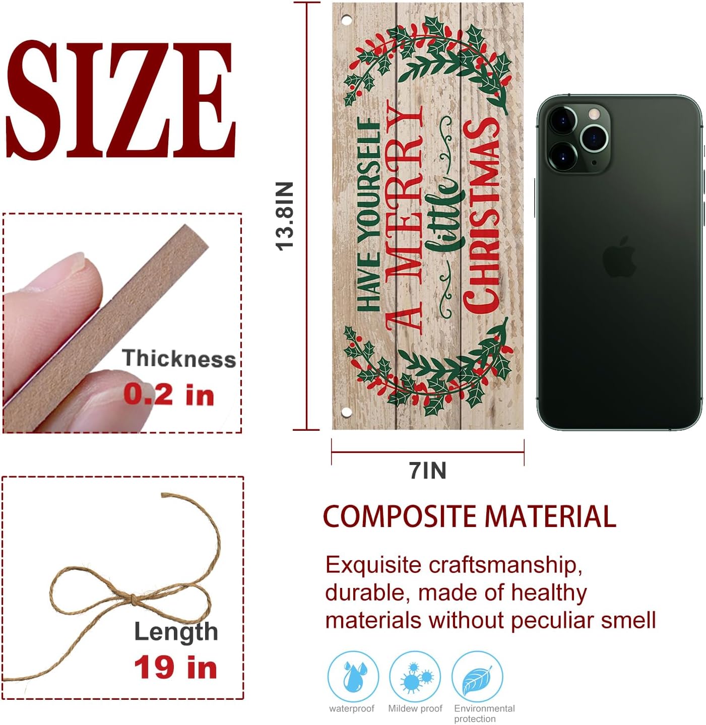 Christmas Door Hanging Sign,Big Wall Wood Winter Decorations Signs,Indoor Outdoor Decorative Ornament for Home, Classroom, Office(7 x 13.8x 0.2 inches)