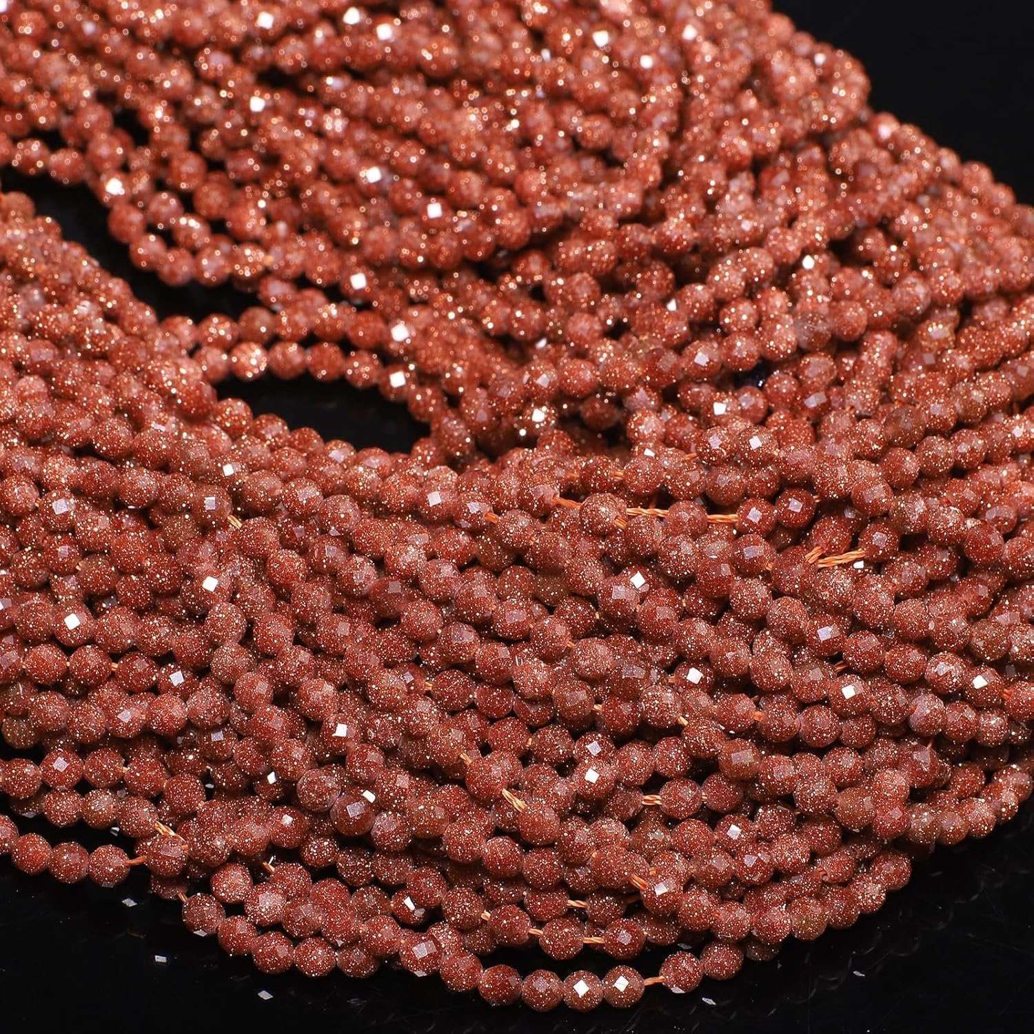 Song Xi 120pcs 3mm Natural Golden Sandstone Gemstone Beads Faceted Round Loose Stone Beads for Jewelry Making