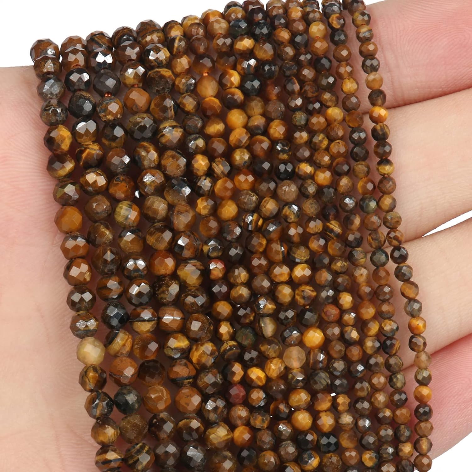 Song Xi 180pcs 2mm Natural Yellow Tiger Eye Gemstone Beads Faceted Round Loose Stone Beads for Jewelry Making