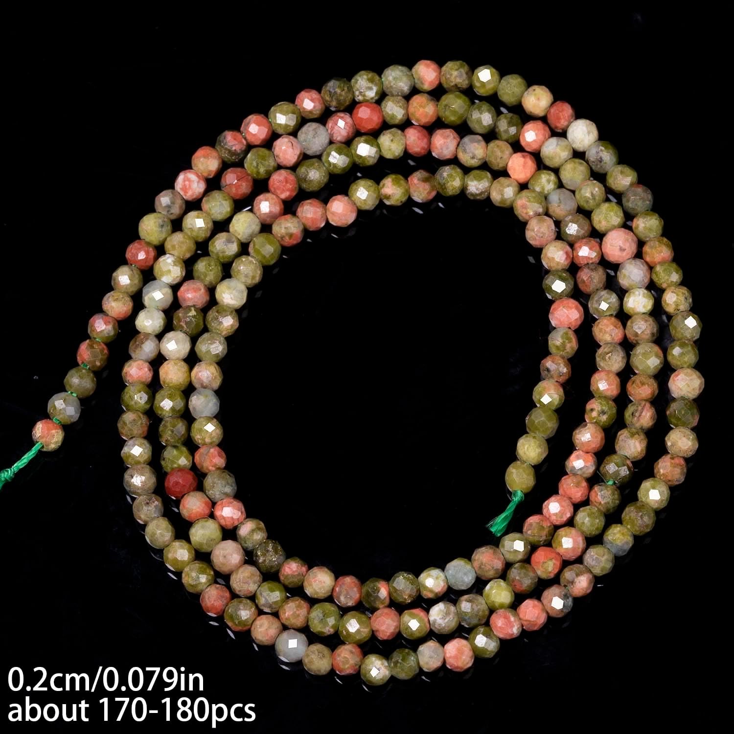 Song Xi 180pcs 2mm Natural Unakite Gemstone Beads Faceted Round Loose Stone Beads for Jewelry Making