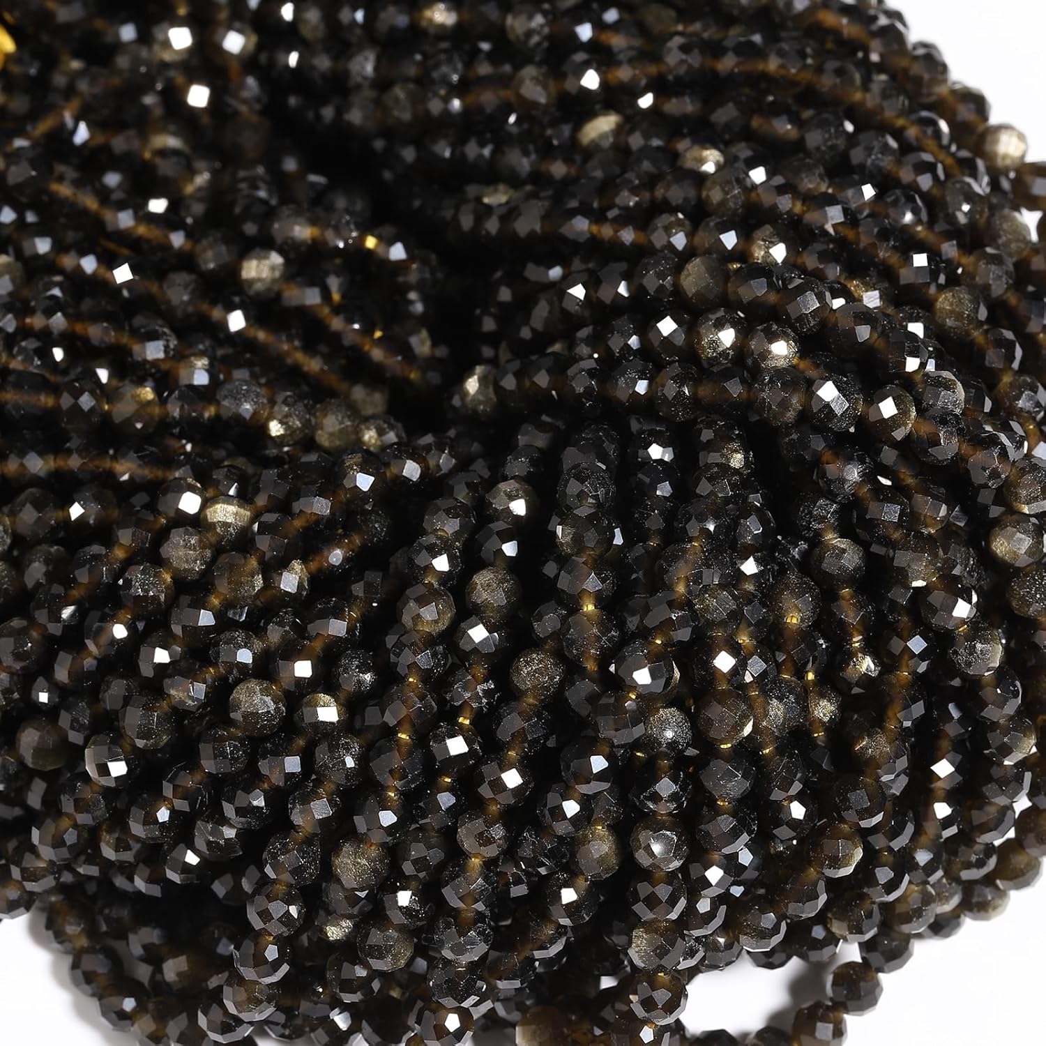 Song Xi 180pcs 2mm Natural Gold Obsidian Gemstone Beads Faceted Round Loose Stone Beads for Jewelry Making
