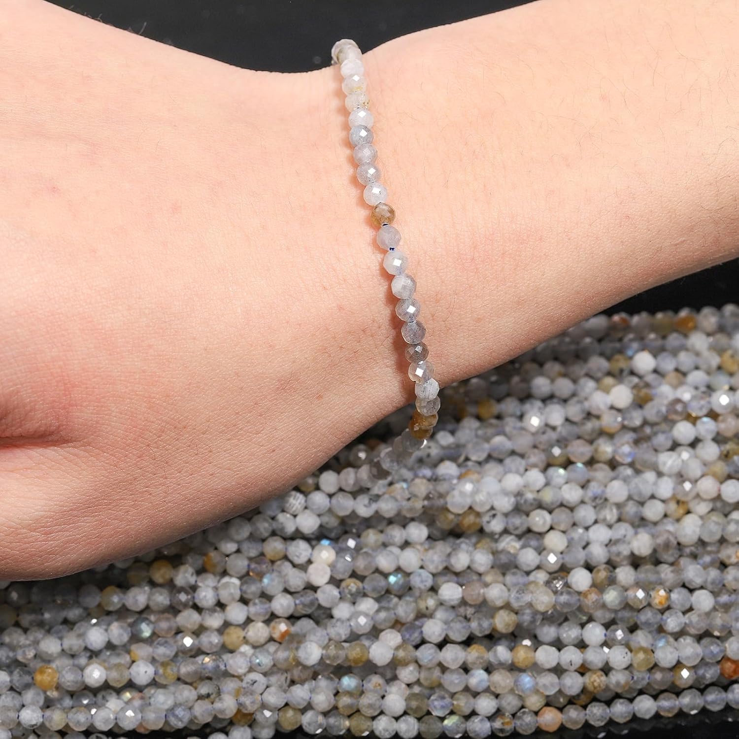 Song Xi 90pcs 4mm Natural Gray Labradorite Gemstone Beads Faceted Round Loose Stone Beads for Jewelry Making