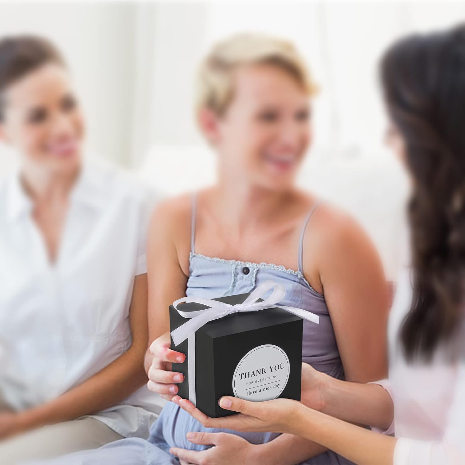 COTOPHER Small Gift Boxes 60 Pack 4x4x4 inches Black Gift Boxes with Lids for Gifts, Crafting, Wedding Party Favor, Cupcake Boxes, Candy, Bridesmaids Proposal Box with Ribbons and Stickers (Black, 60)