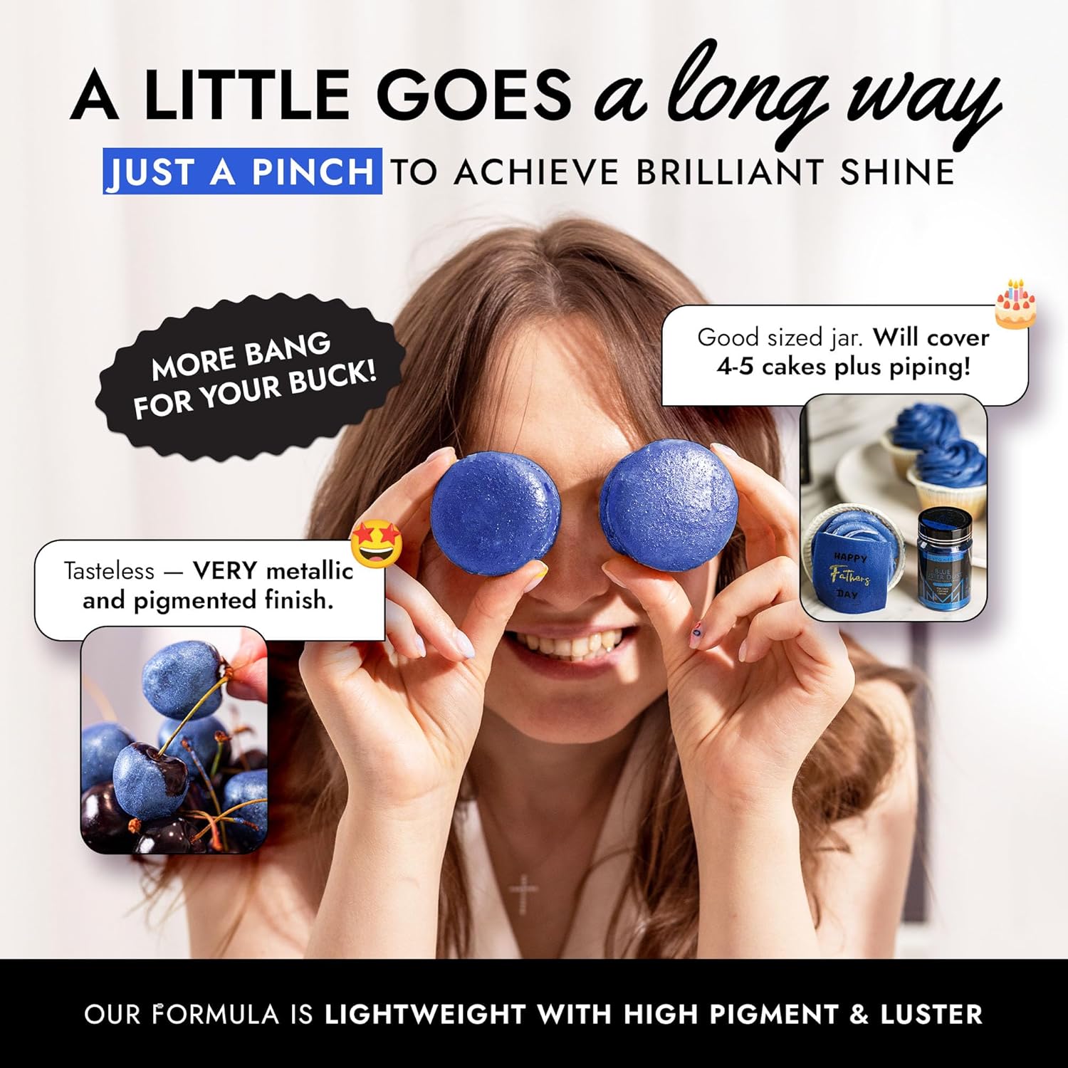 • EASY TO USE: Our blue luster dust is incredibly versatile. Apply with a wet brush, airbrush, or dry brush, and even mix into beverages. Achieve professional-looking results effortlessly at home, whether decorating halloween cakes or adding shimmer to cocktails.