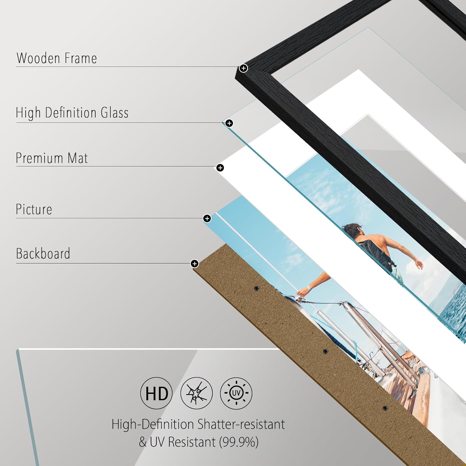 • CRYSTAL CLEAR GLASS: Serving your pictures a perfect view, VCK introduces polished HD tempered glass. This is harder to break than ordinary glass, anti-UV (99.9%), anti-scratch, and safe to use for kids.