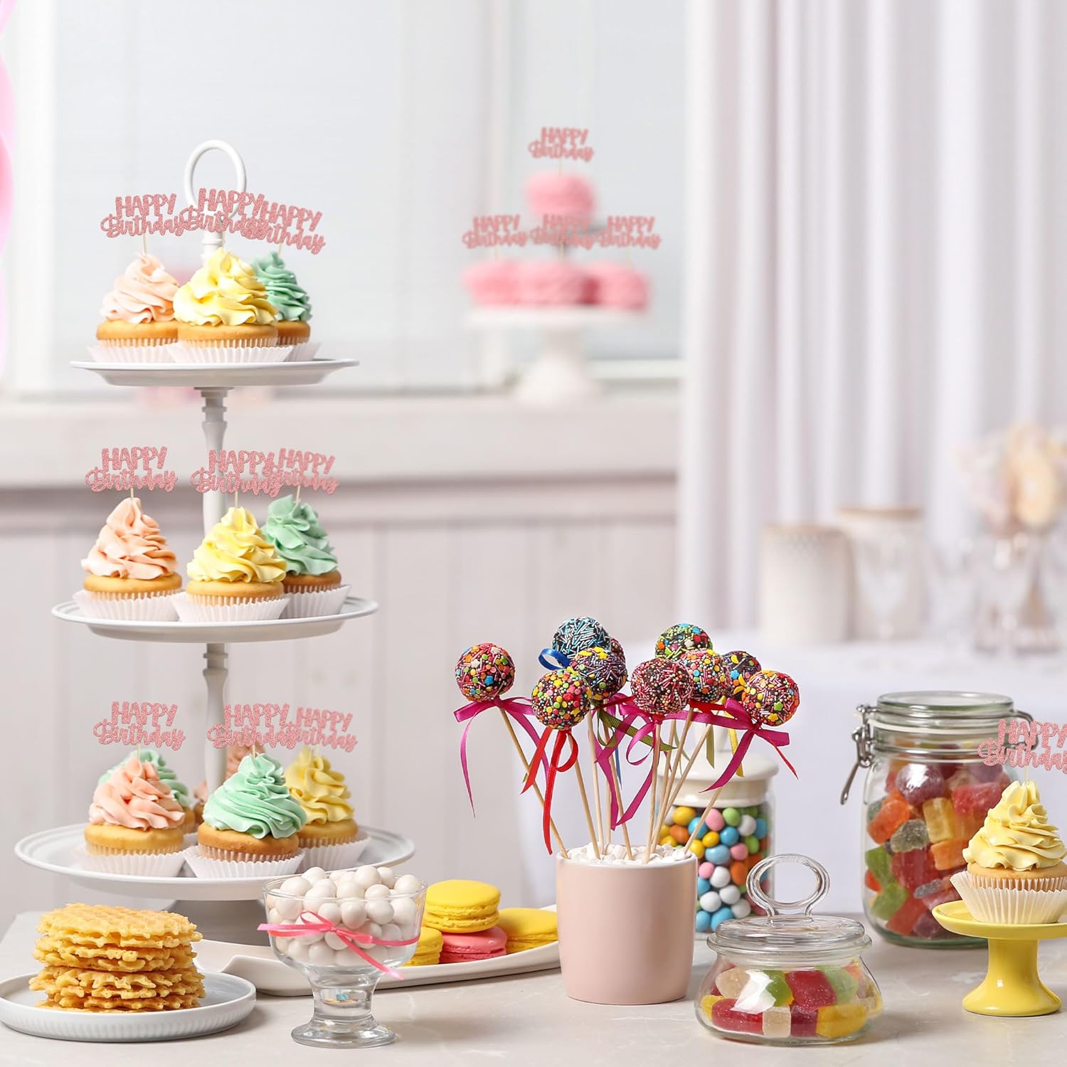 • 🌟 Premium Material: These glitter happy birthday cupcake Toppers are made of high quality paper and food-grade toothpick, very safe to put them on cakes, cupcakes, ice cream, fruits, pie, dessert, cheese or any dish and food appetizer you want to decorate.
