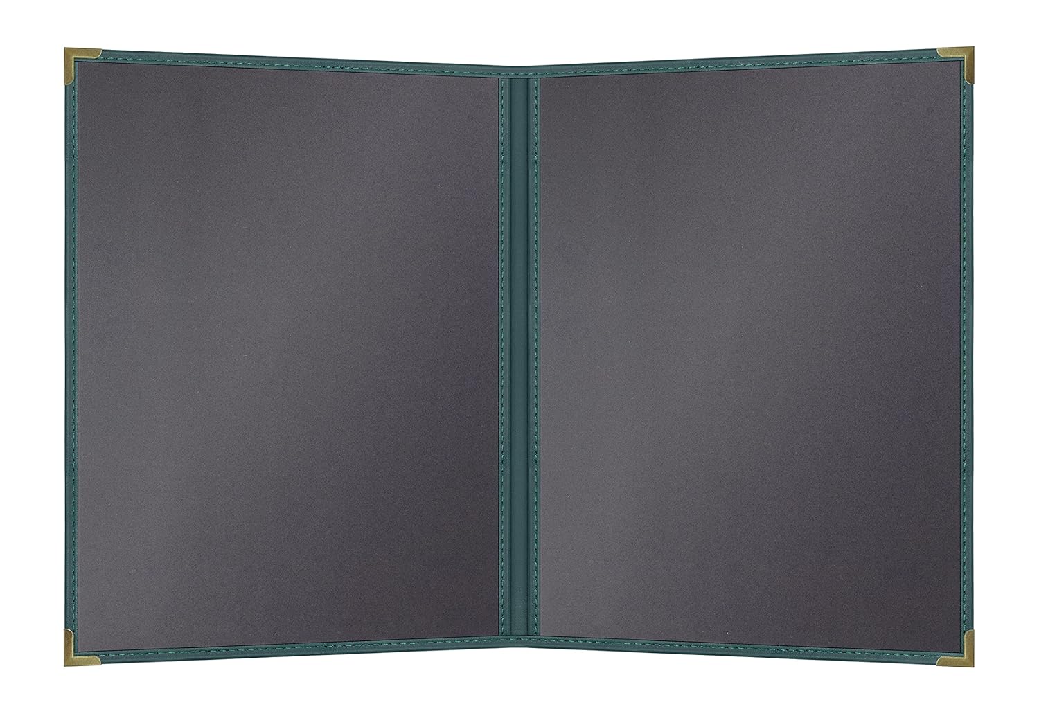 Goodsmart Pajco Style Restaurant Menu Covers – Pack of 10, Side-Loading Menu Holders, Single Stitched Edge, Clear Vinyl Menu Sleeves, Leatherette Trim, Gold Corners, Green, 2 View (8.5" x 11")