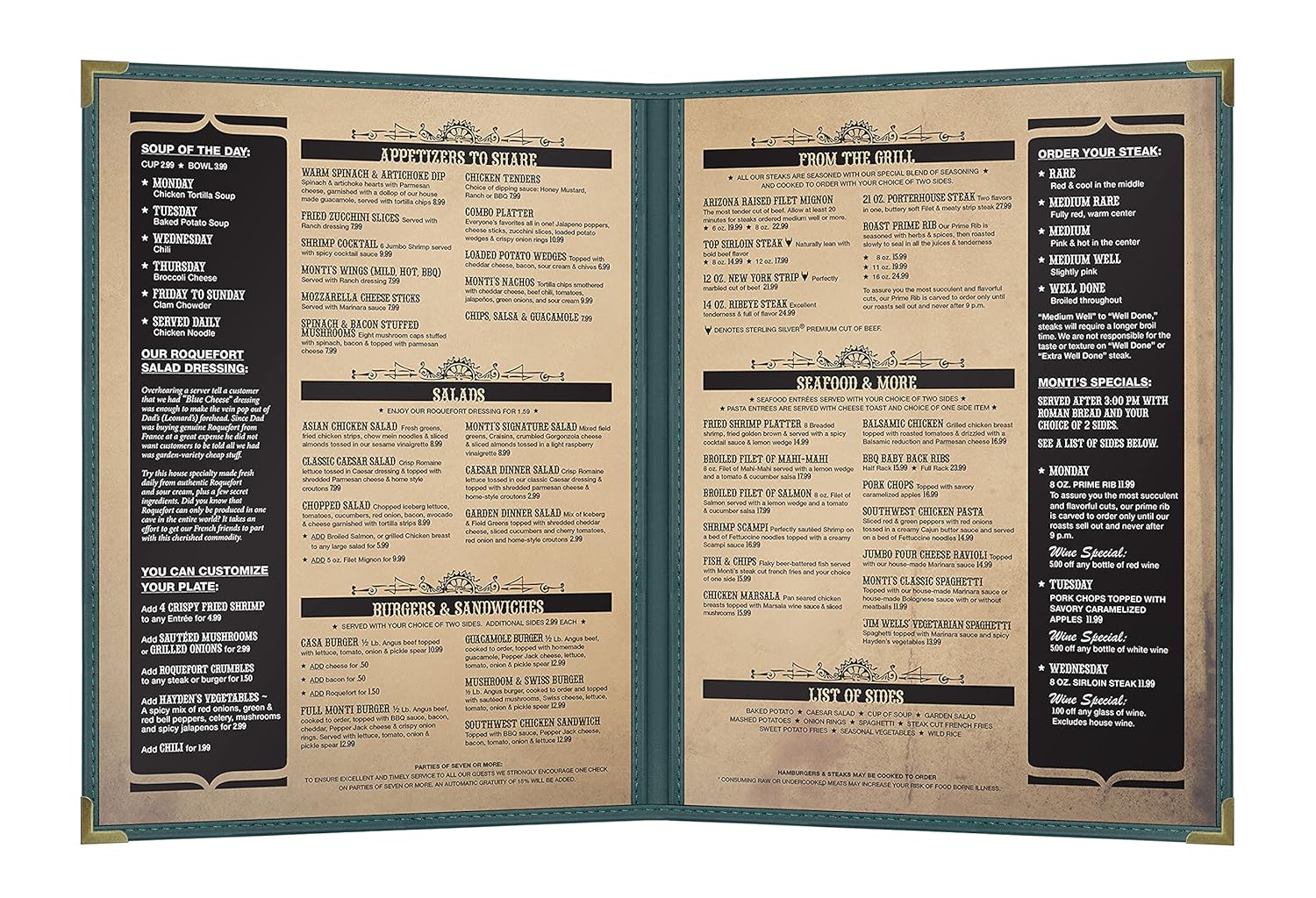 • MENU HOLDER AVAILABLE SIZES: 8.5" x 11", 8.5" x 14"; We offer a variety of menu cover sizes to meet your specific presentation needs, including 8.5" x 11" as a versatile standard size suitable for most menu types; 8.5" x 14" for larger menus with multiple categories.