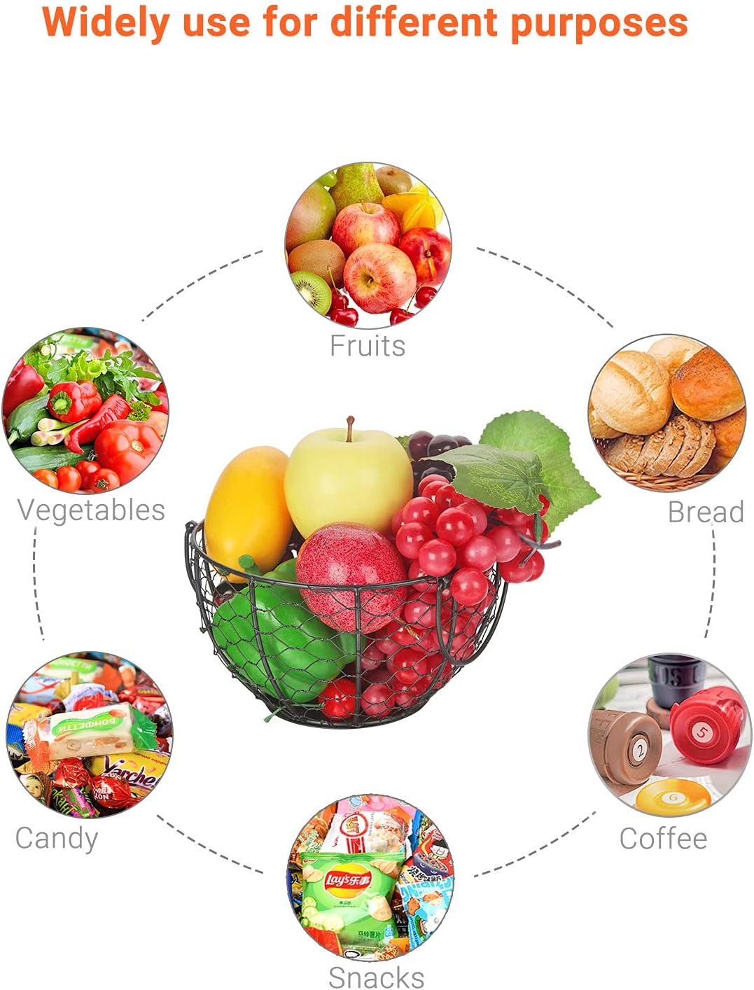 • Metal wire structure chicken wire storage basket: Sturdy metal wire structure with chicken wire maintains good airflow to keep fruits fresh
