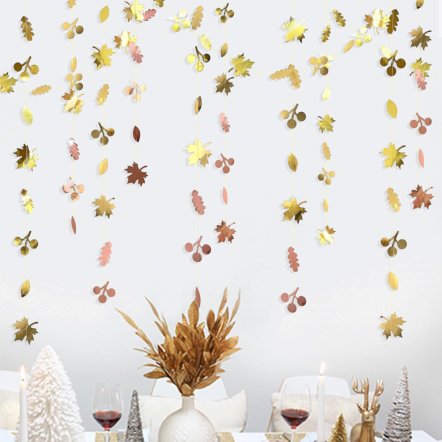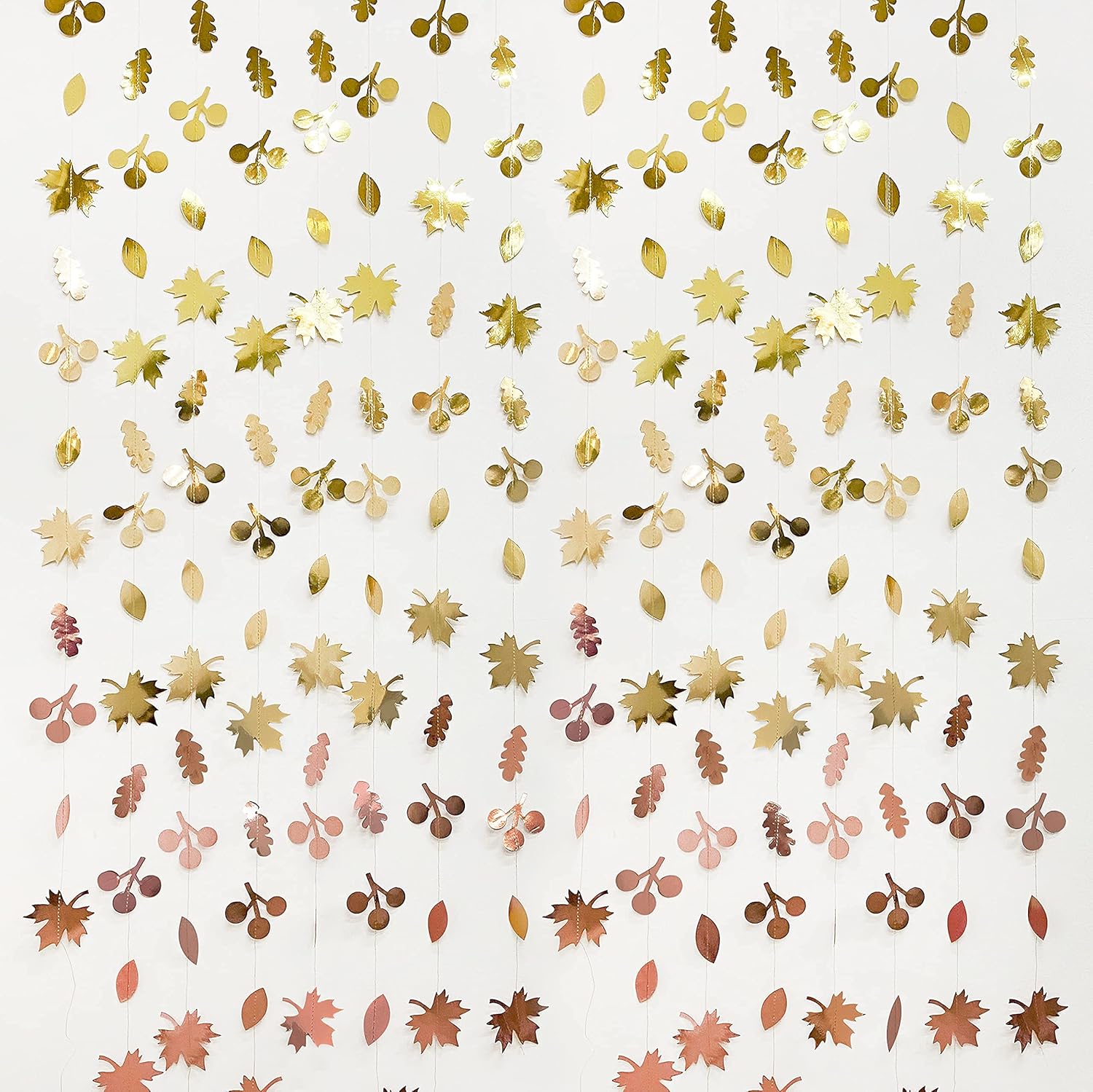 • 🍁USING OCCASION-Our maple leaves garlands are perfect for decorating any parties.such as fall wedding,birthday,bachelorette,engagement,bridal shower,baby shower,hen party,tea party,anniversary,fall autumn party,harvest party,gold party,rose gold party,champagne gold party,thanksgiving party decorations supplies.Also ideal for windows/nursery/showcase decor.