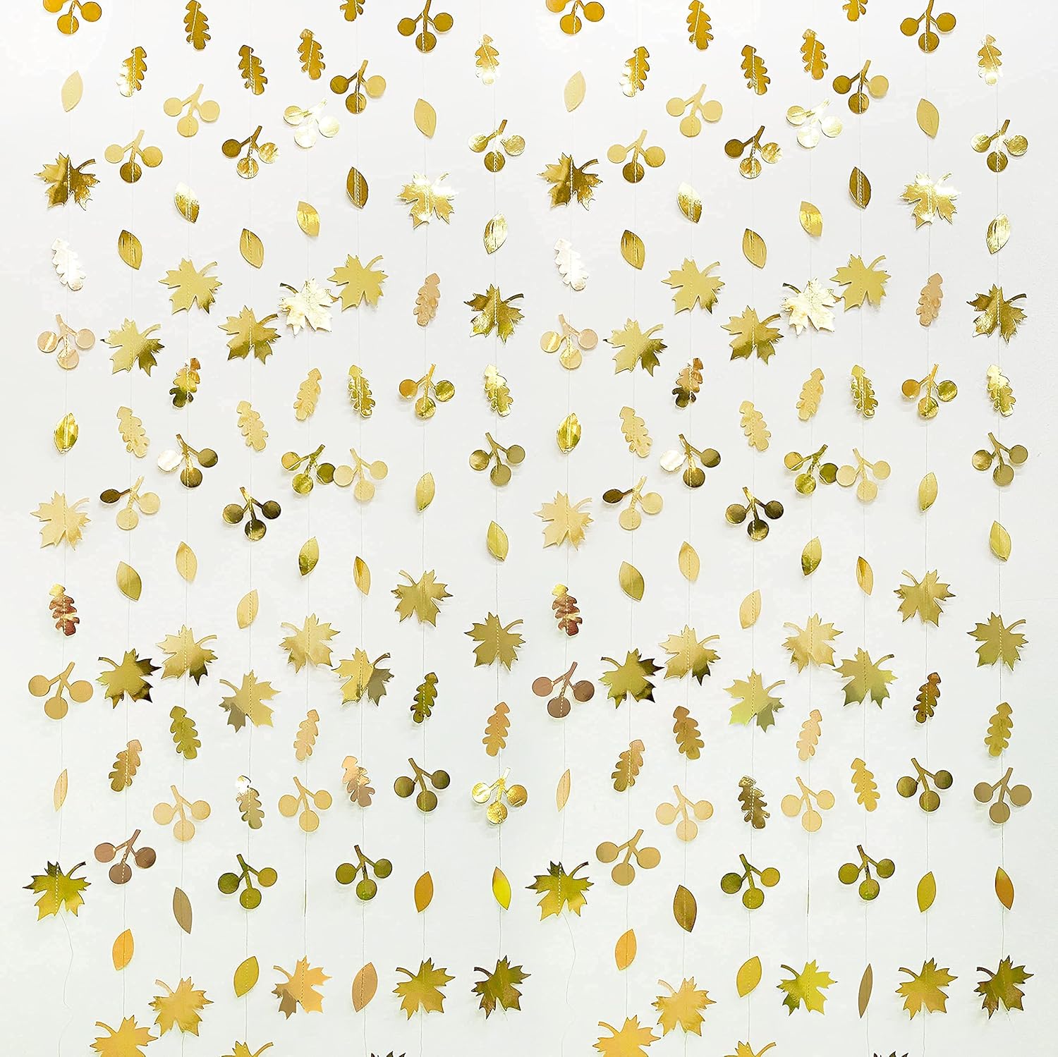 • 🍁HIGH QUALITY-Our gold thanksgiving fall party garland are made of double sided high-quality gold metallic paper, carefully hand-made and machine-sewn together with thread.durable and reusable.