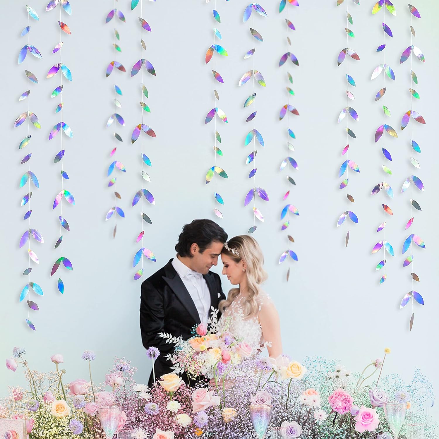 • UNIQUE DESIGN- Our iridescent leaves garlands are made of metallic holographic paper.different light will reflect different colors.Bling bling shining make the atmosphere of your decor more perfect.
