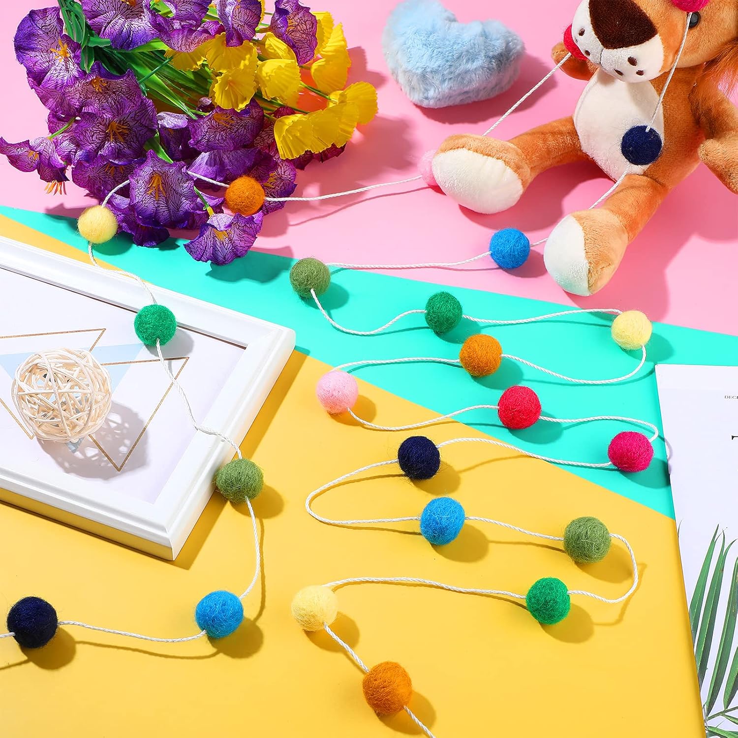 • Nice decoration set: the pom pom garland looks elegant and cute when hung on the wall or as backdrop decorations, easy to hang on the ceilings, walls as party or home decoration; Each garland consists of 10 pieces of tassels and each tassel contains multiple colors, full of warm and sweet feelings; The pennant banner cutting is neat, will not easily fall off or break, durable and reusable
