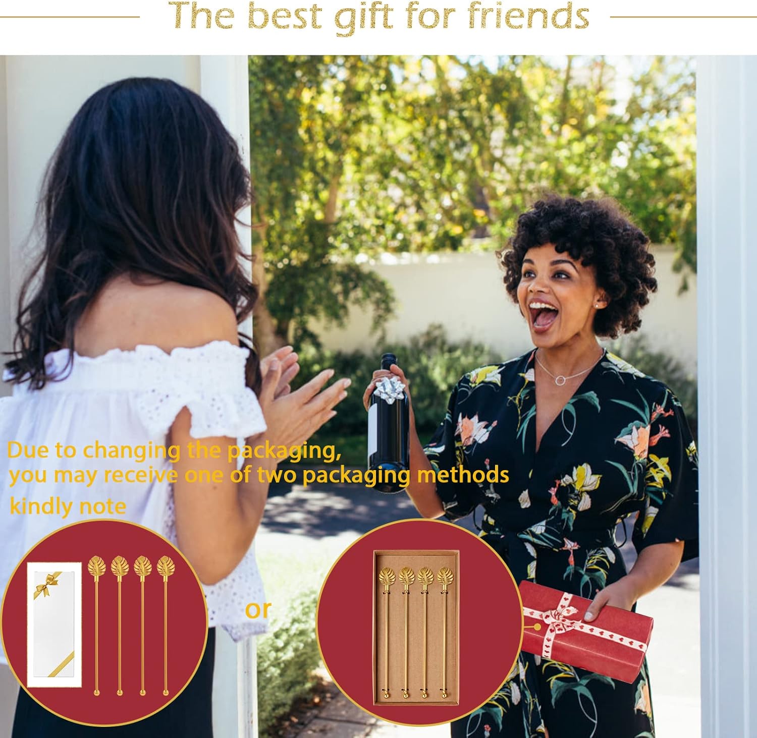 Stainless Steel Coffee Beverage Stirrers Stir Cocktail Drink Swizzle Stick with Palm leaf Metal Top,4PCS GOLD stirrer