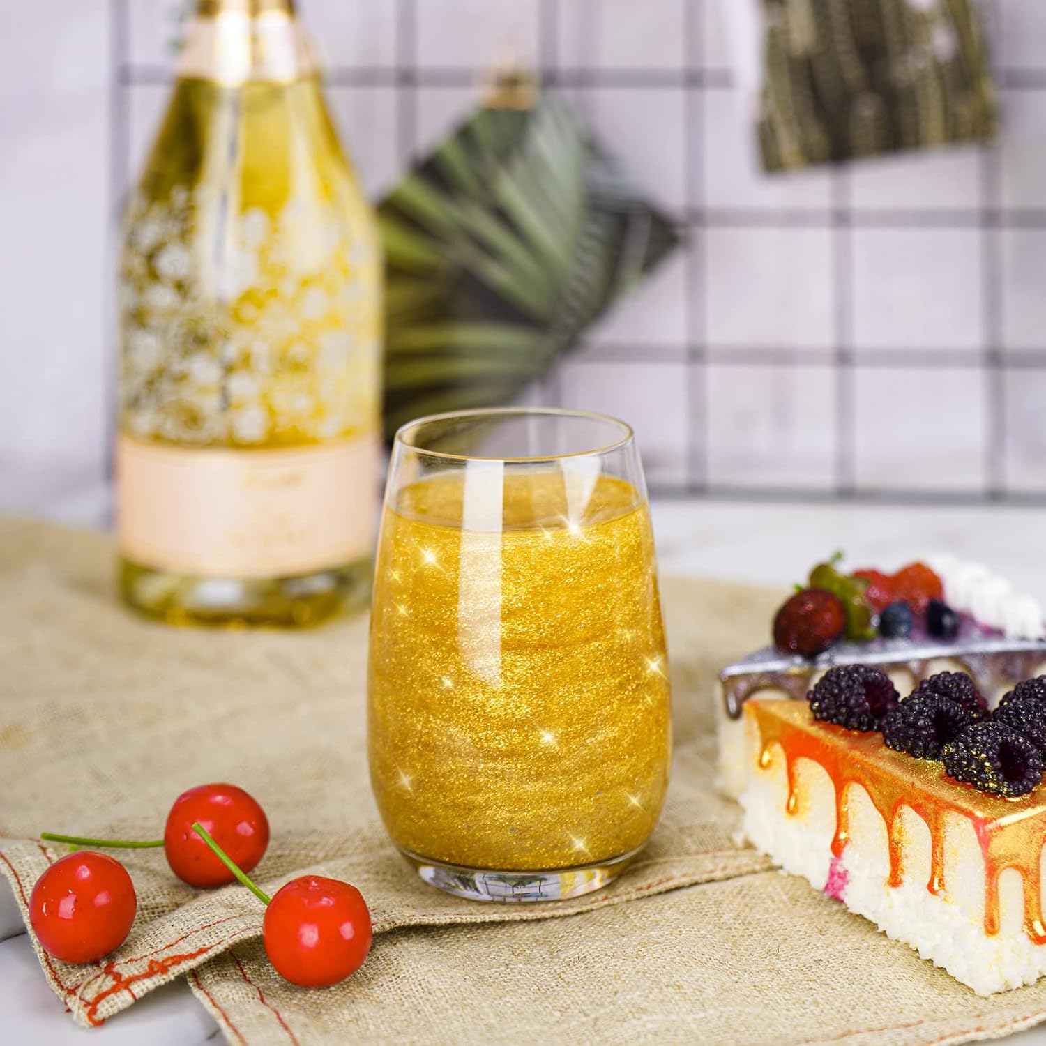 • 🌟【Use with Brews】Food-grade glitters are so fun and simple to use with brews. Add one pinch or two directly to your favorite beverage, mix it with cocktail syrups, juices, liqueurs, liquors, or spirits. Use a clear glass instead of opaque containers so that the liquid looks so cool, especially when you move it around in the glass with a stir. A tiny amount of dust can create a great visual spectacle, and clear liquids offer a great blank canvas for glitter to show off the best ability.