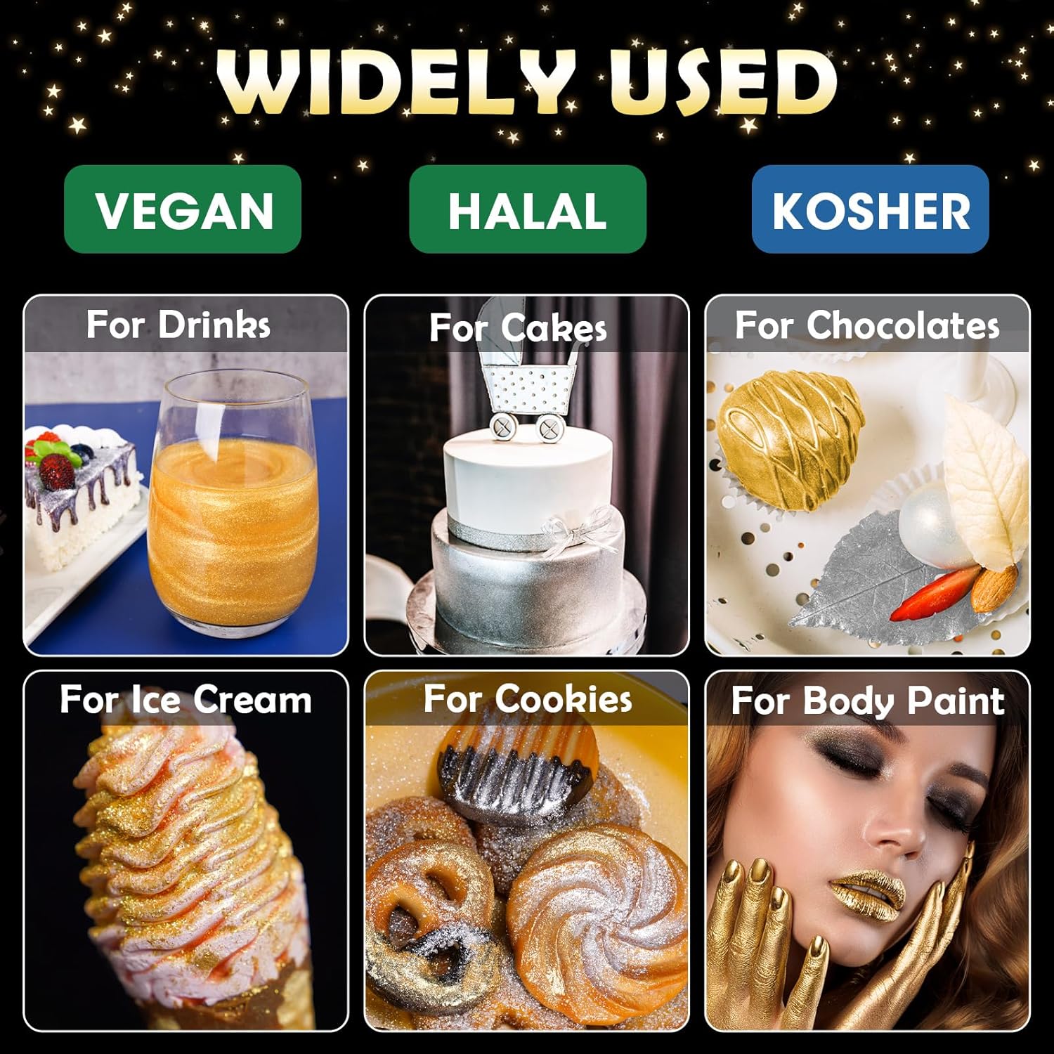 • 🌟【Vegan & Allergen-Free】Food-grade glitter uses only the highest quality vegan ingredients and does not contain common food allergens, including gluten, nuts or dairy products, so everyone can use and enjoy this product regardless of diet or food allergies. Unlike food contact glitter, these are 100% edible, so you don't need to worry about using them in your creations to make them sparkle for all.