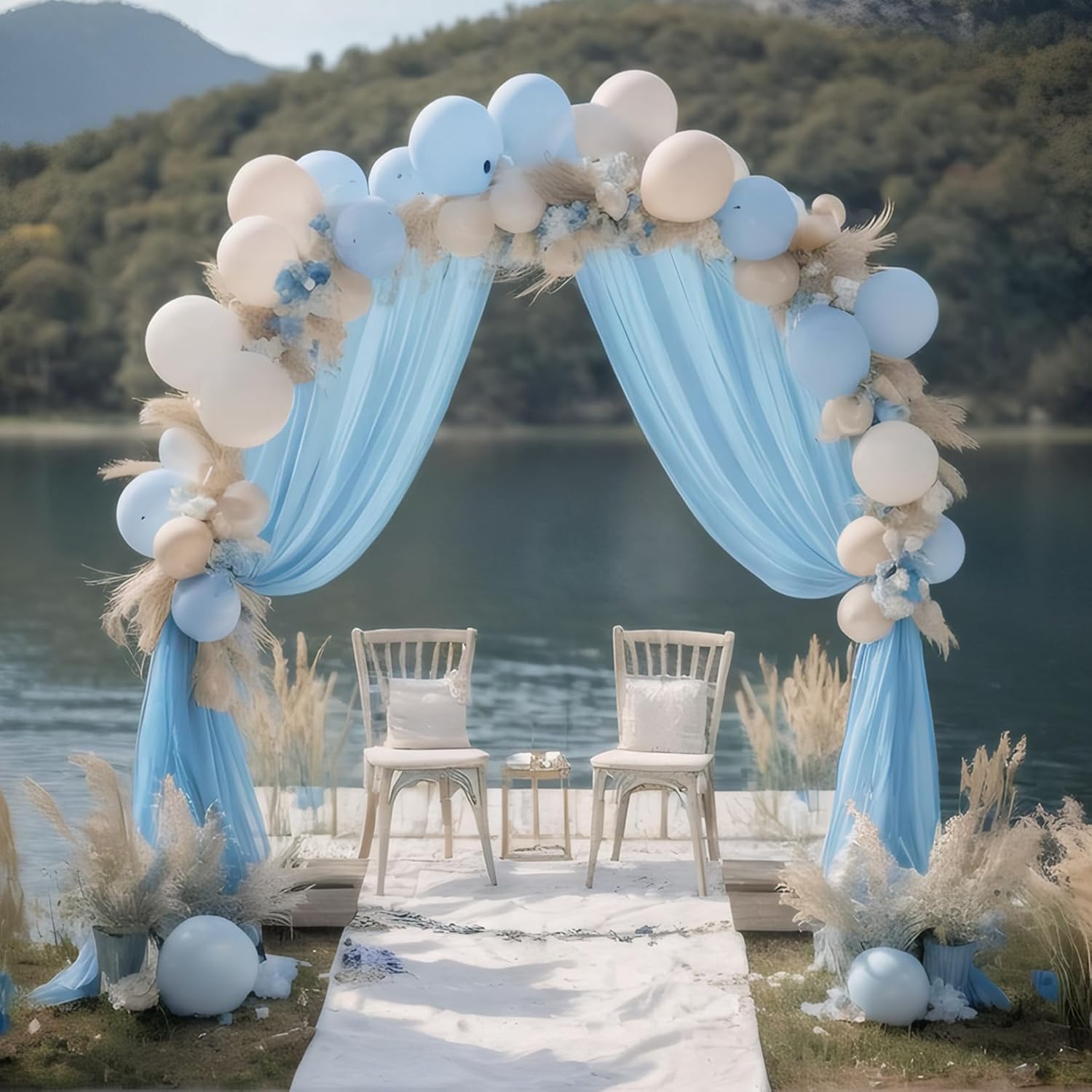 DUOBAO Sky Blue Chiffon Backdrop Curtain-2 Panels 29x120-Inch Wedding Backdrop Drapes Beach Curtains for Living Room Photography Backdrops for Photoshoot, Ceremony Decorations