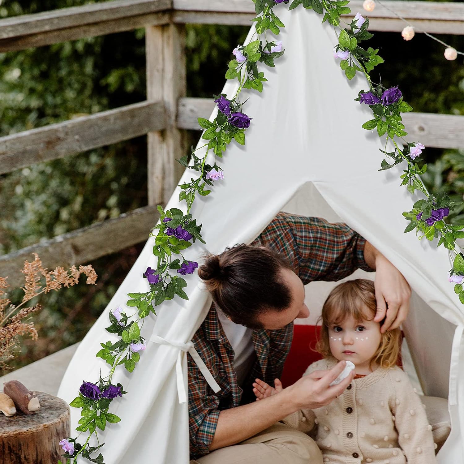Floweroyal 2 Pack Artificial Flower Garlands 15.8FT Fake Rose Vines Silk Flowers Hanging Rose Ivy for Wedding Arch Party Home Garden Wall Decor (Purple)