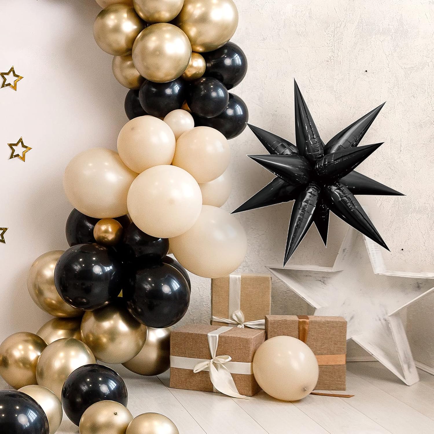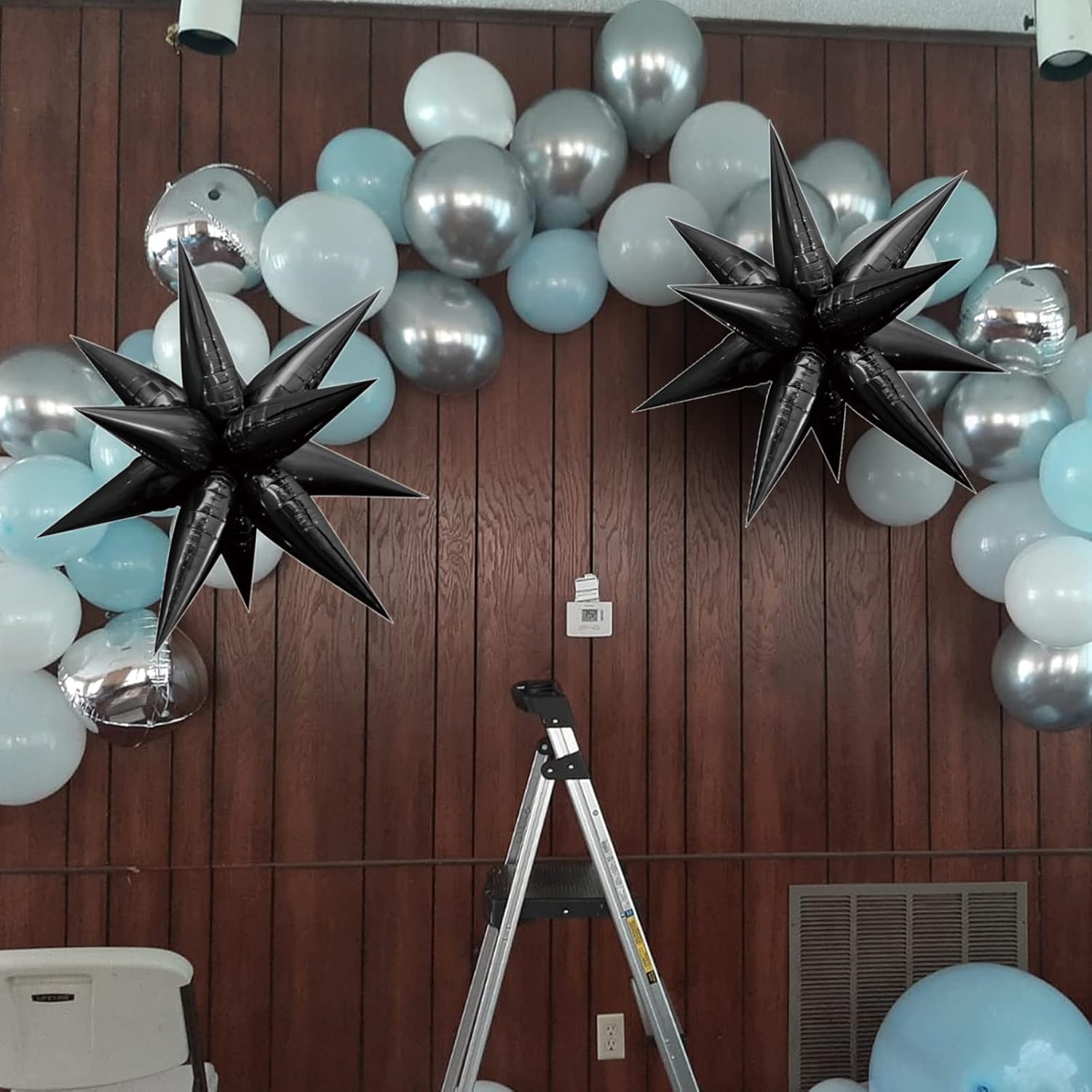 • Star Balloons, Item included 24 pcs drop-balloon, assemble 12pcs drop-balloon into a Star-burst balloon, total 2pcs Starburst balloon