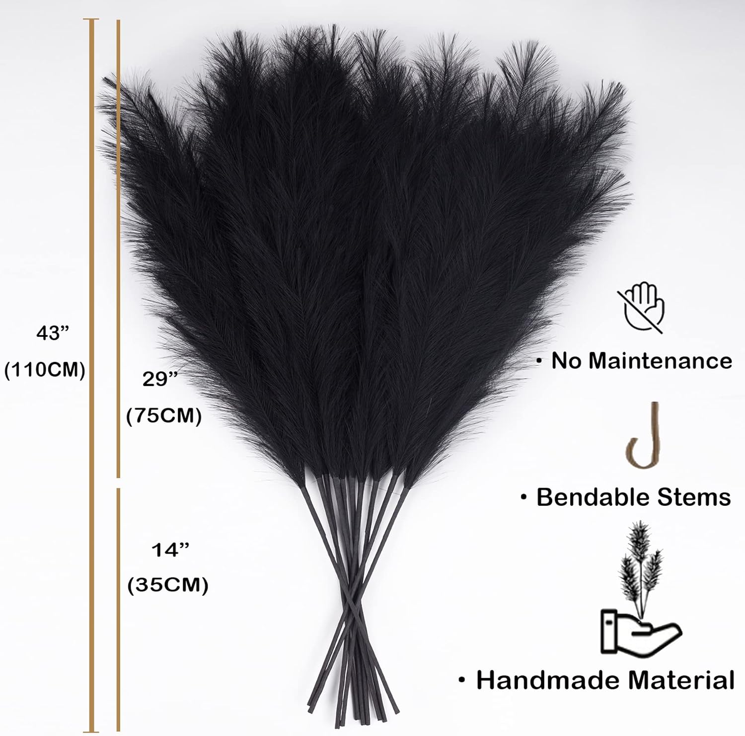 Faux Pampas Grass 6 Stems, Artificial Pampas Grass - 43 inch Total Extra Large Pompass Grass Tall Pompous Boho Flower Arrangement and Floor Vase Filler Home Decor for Room Wedding Party (Black)