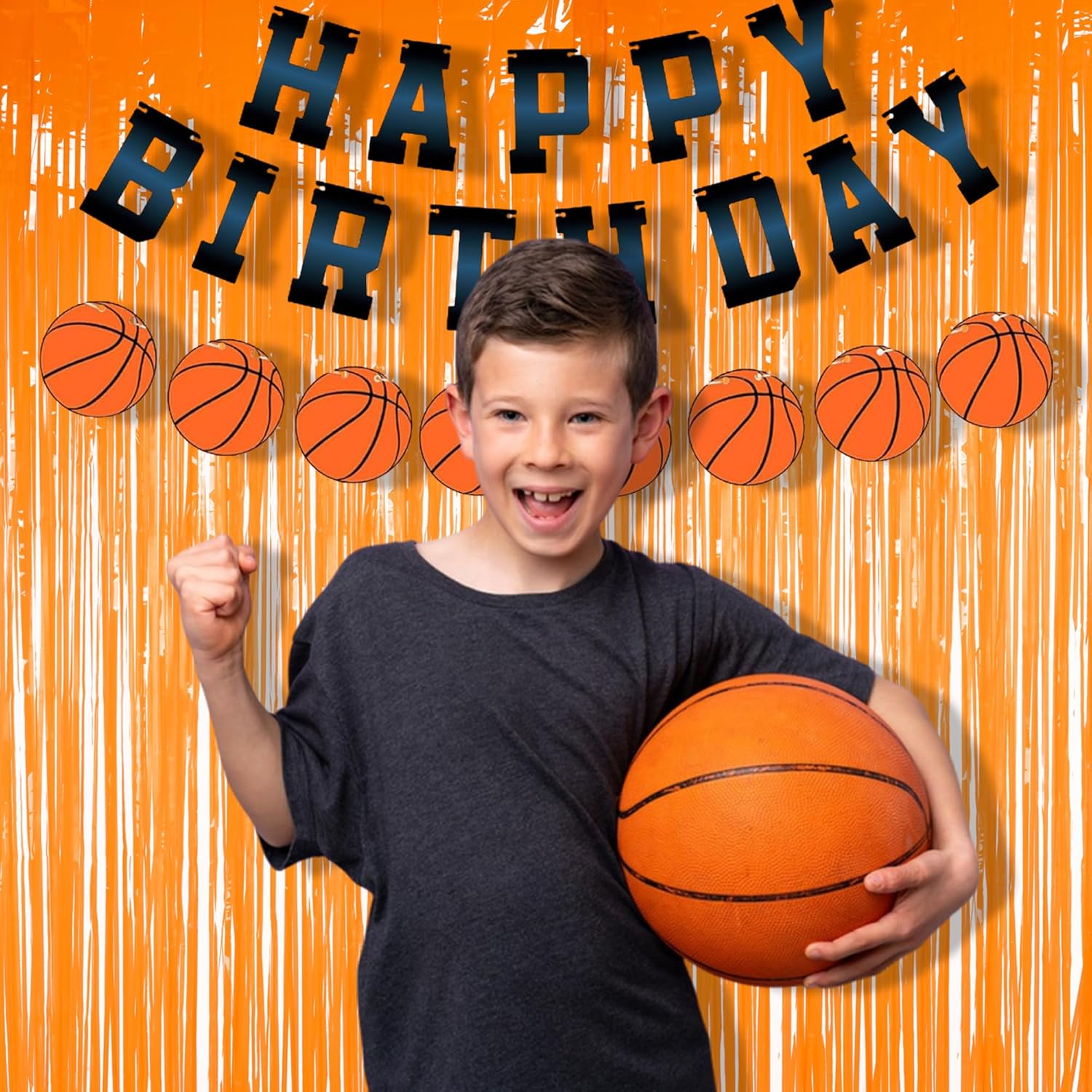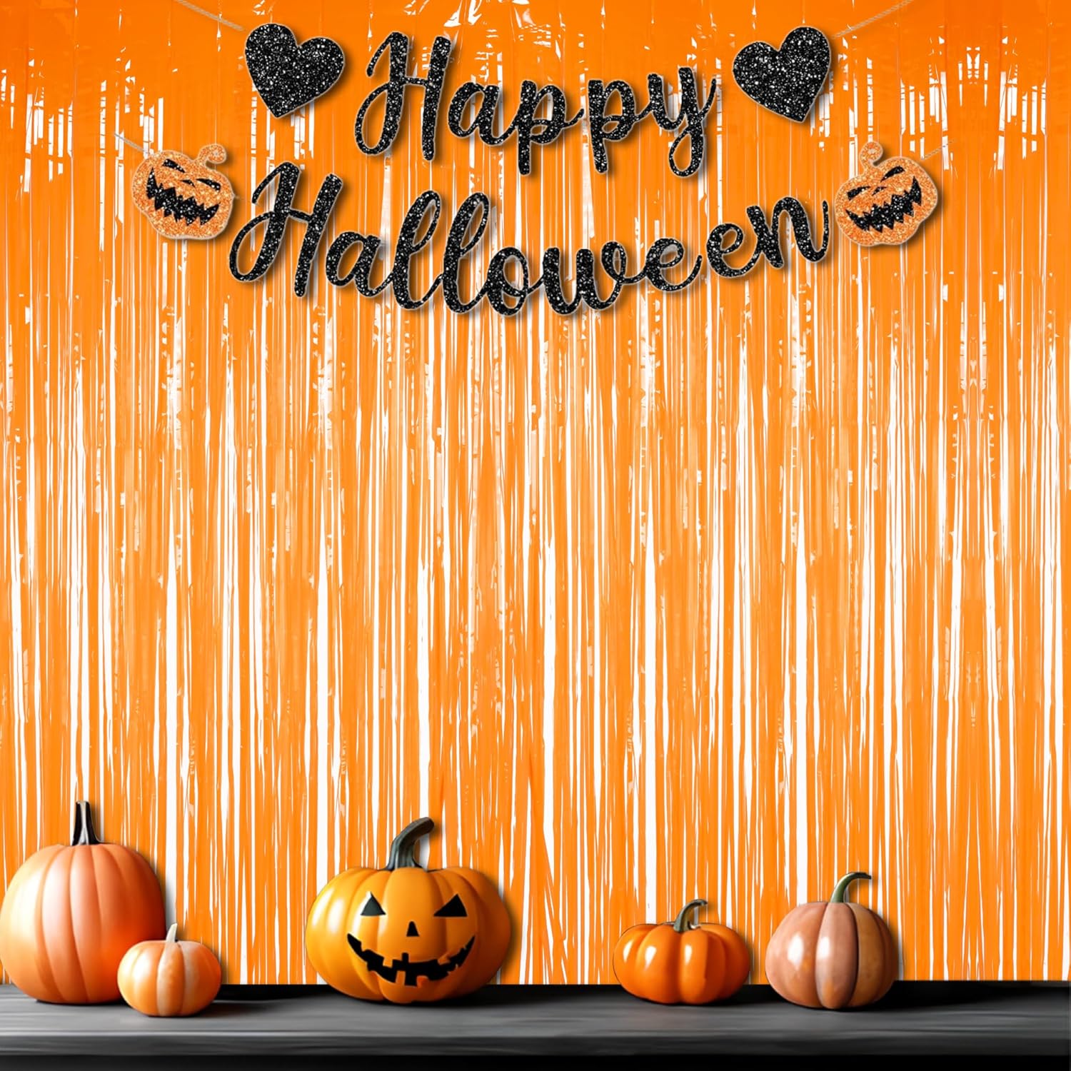 Foil Fringe Curtains Halloweens Decorations - Orange Tinsel Photo Backdrop Party Streamers for St Patricks Day, Easter, Birthdays, Fall, Pumpkin Theme, Thanksgiving, Basketball Party Decorations