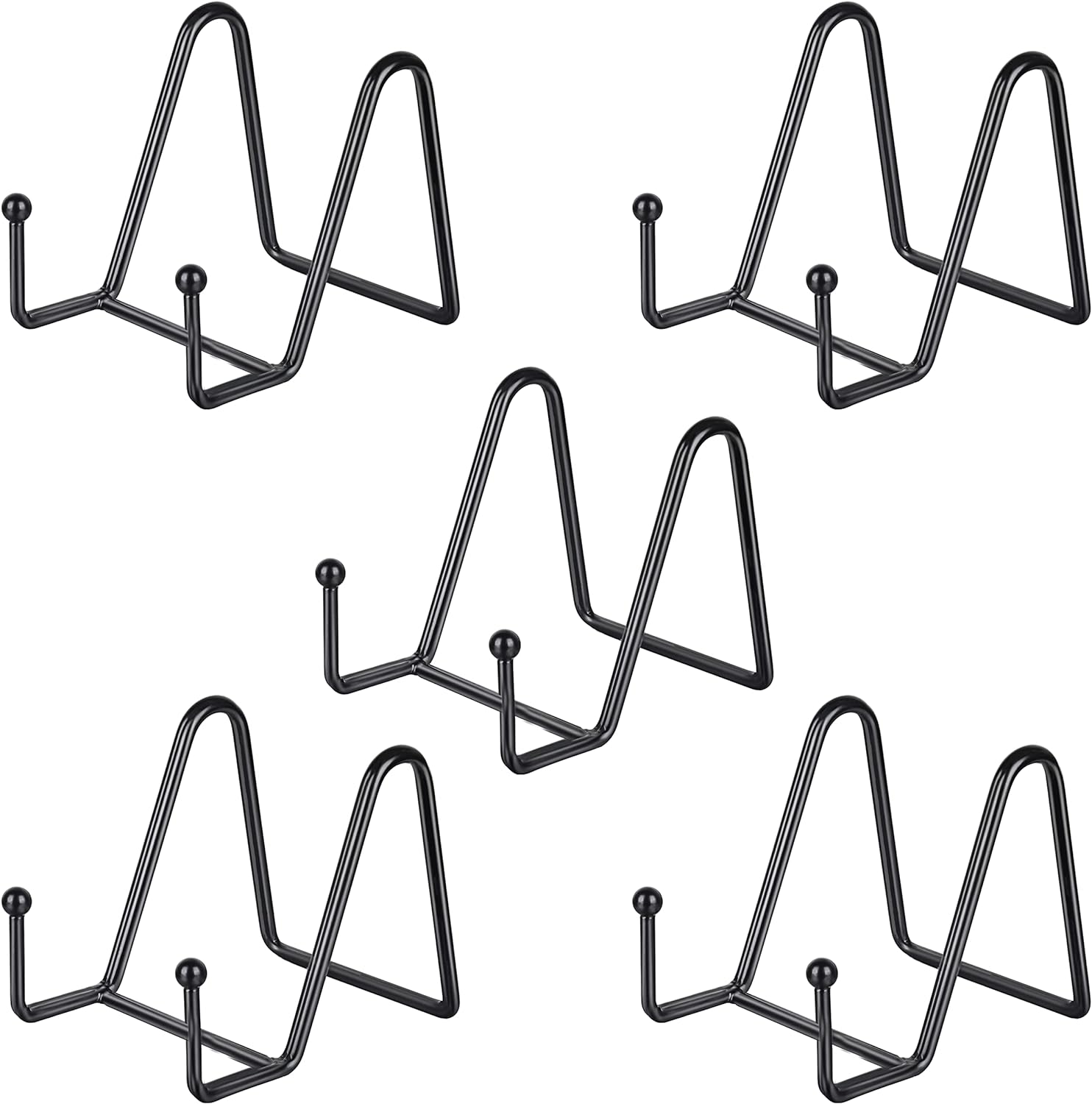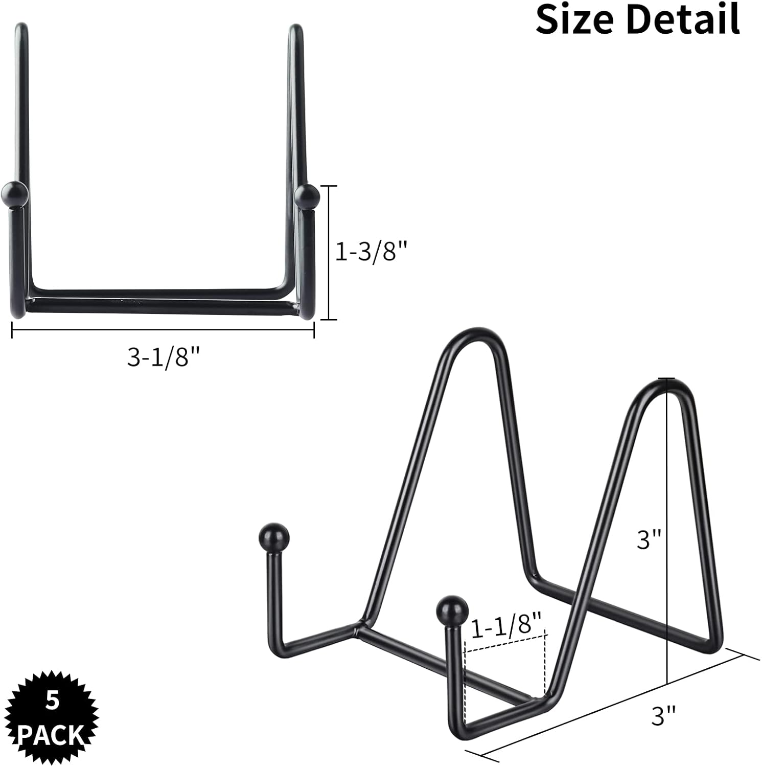 IBosins 5 Pack 3 Inch Small Plate Holder Display Stands, Mini Metal Black Frame Stand for Picture, Book, Photo Easel, Creation, Collectibles