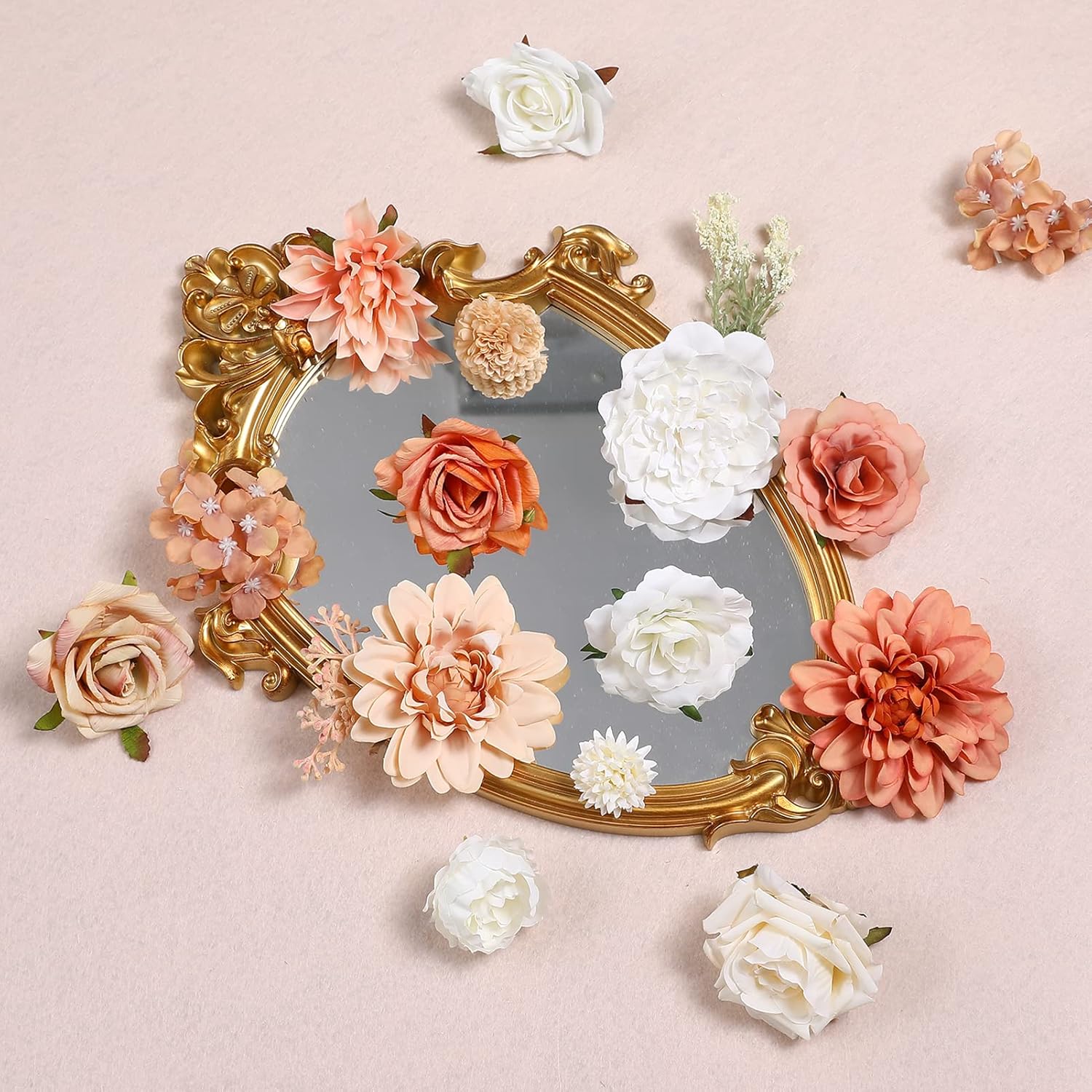 • Material: This is a combination pack of flowers of different materials in thematic colors. Main materials include 34pcs artificial silk flowers + Some green leaves。which gives them the look of fresh roses and touches soft.