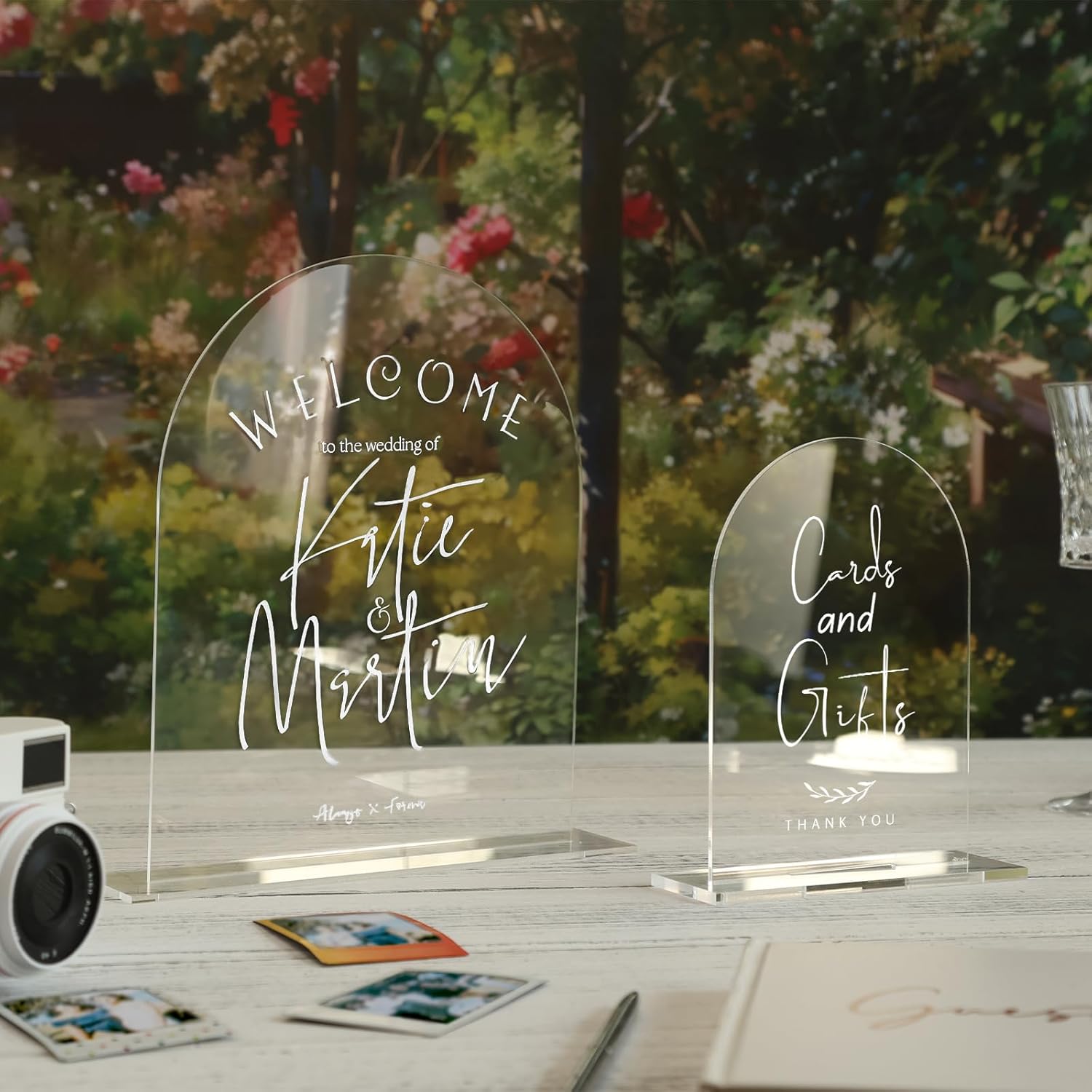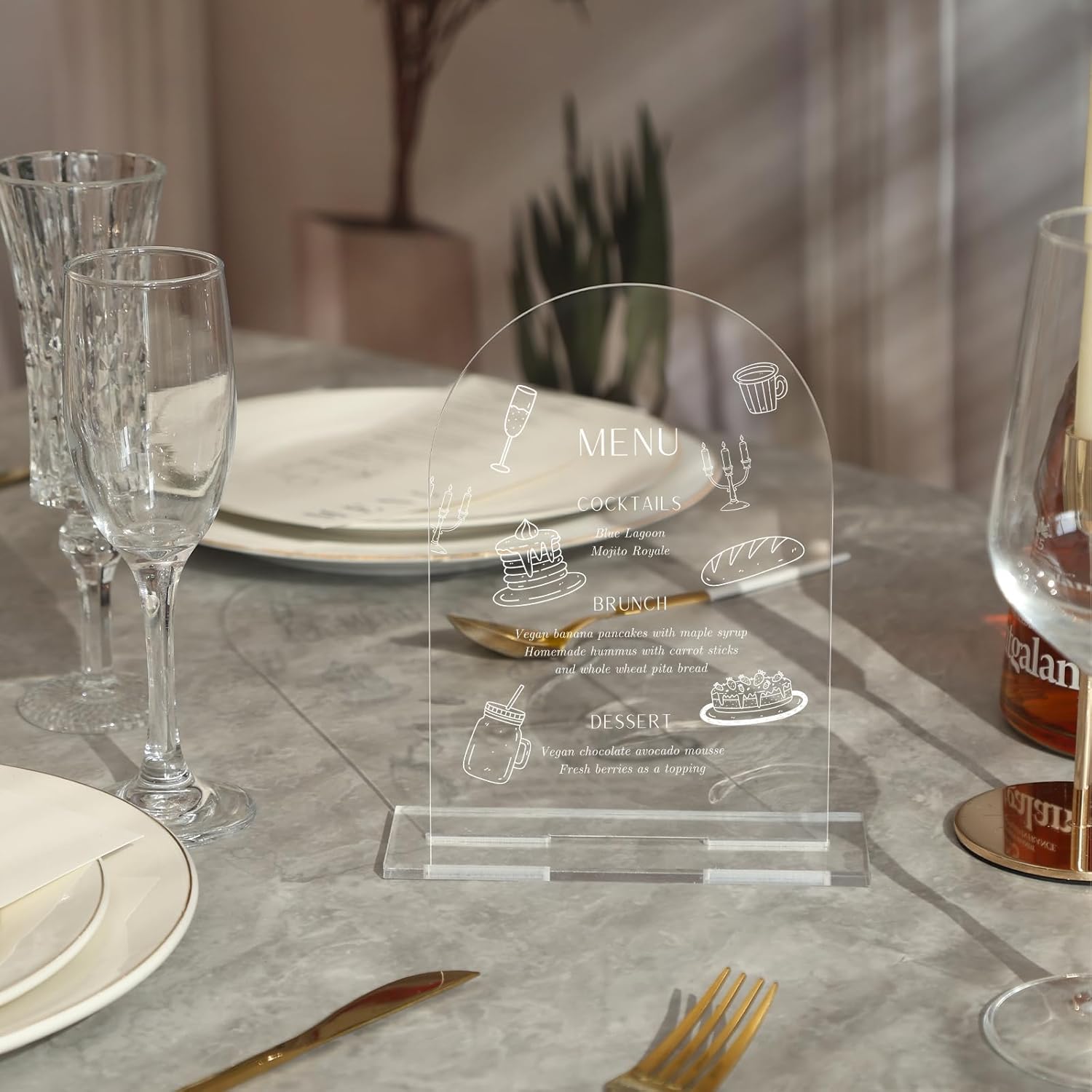 • Versatile Acrylic Signs: Elevate your wedding's chic factor with acrylic signs that can double as tabletop markers, welcome banners, card and gift indicators, bar menus, and food labels, or even as a canvas for your hand calligraphy to create personalized desk decor or heartfelt gifts for loved ones.