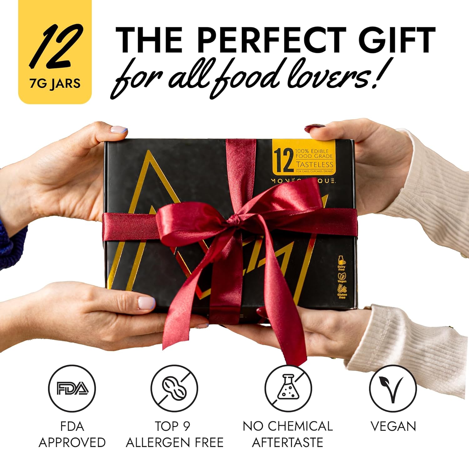 MONÉGASQUE Luster Dust Edible Glitter for Drinks 12 Pcs Set – Best Gift Idea for Bakers – Bakers Gift Set for Cake Decorations – Edible Glitter for Cakes & Cocktails – Cake Decorating Supplies