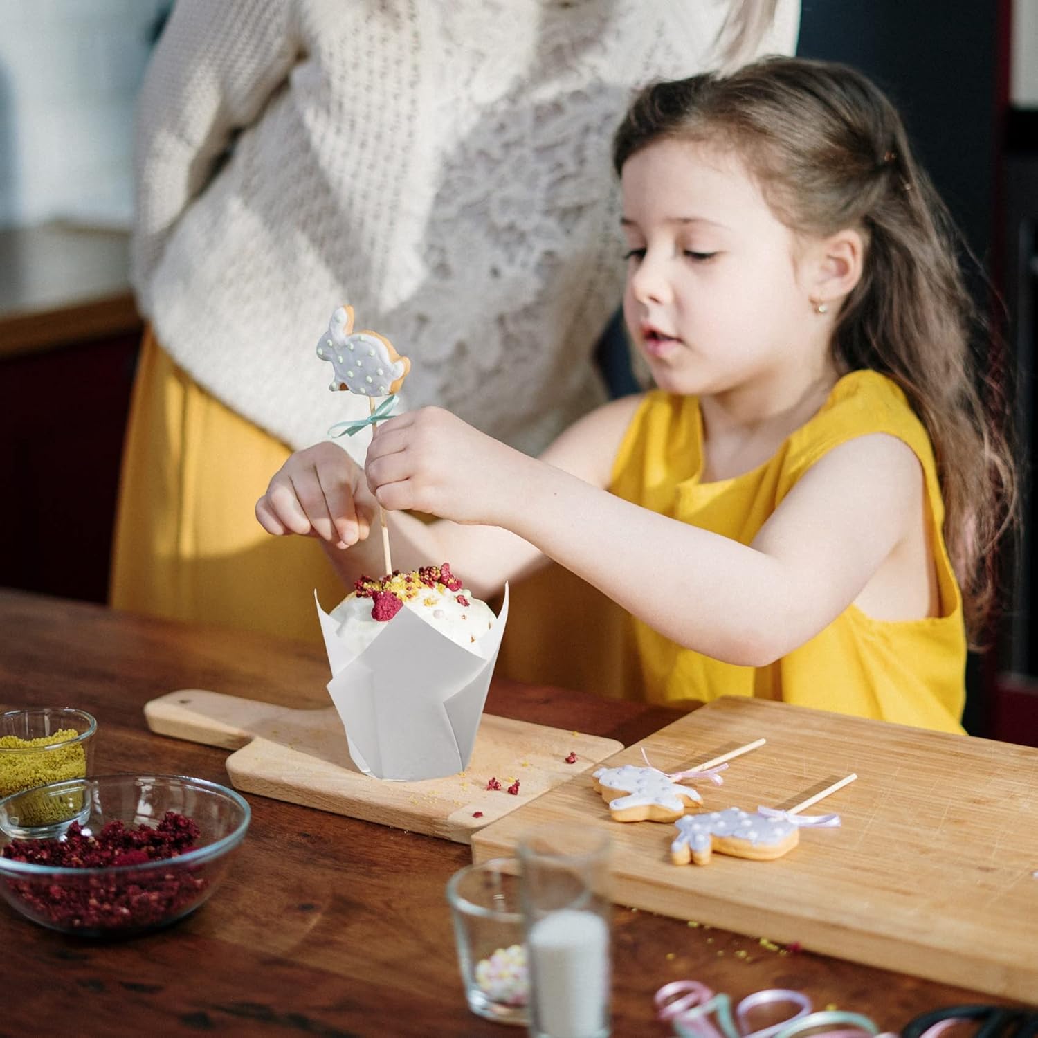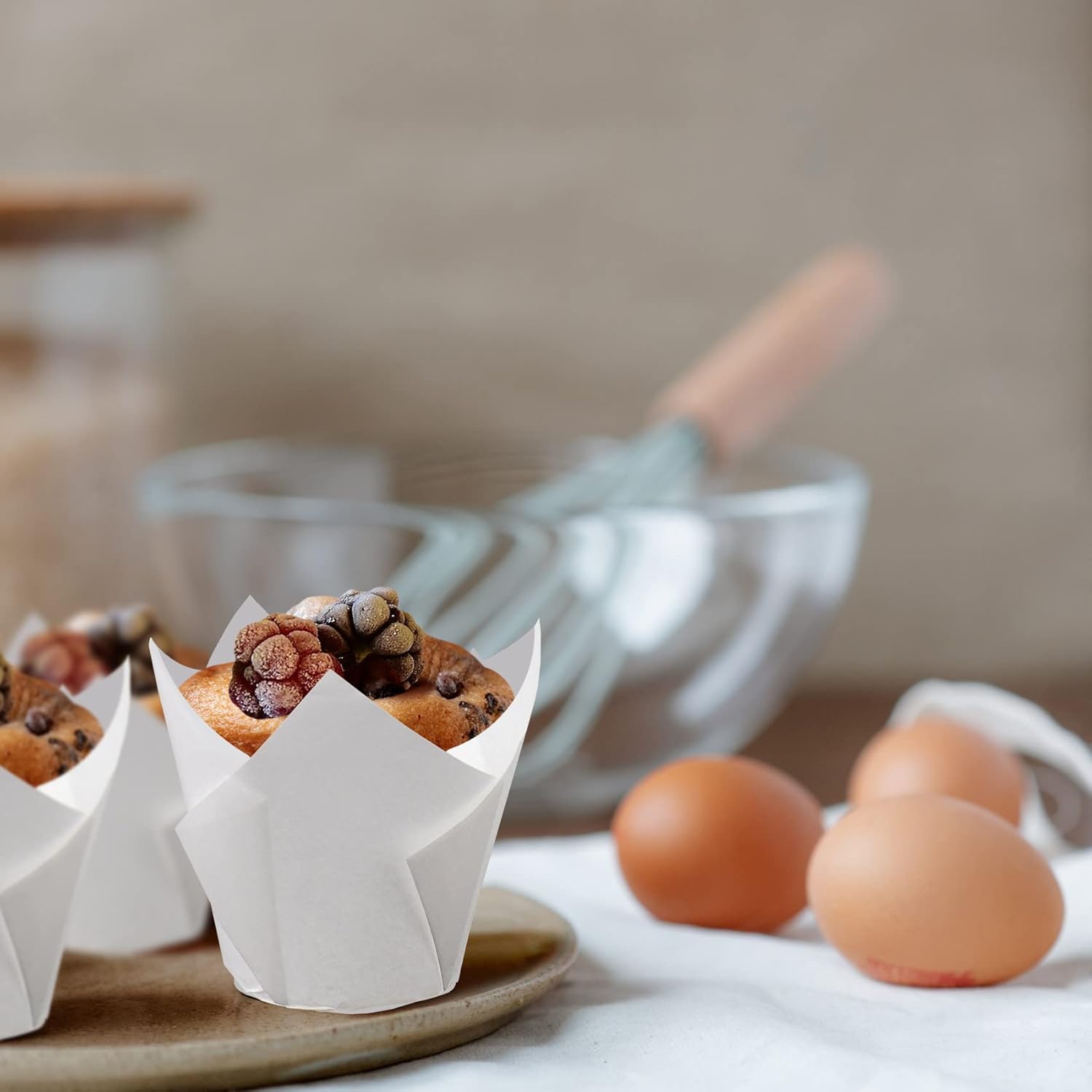 • PREMIUM QUALITY MATERIAL: These cupcake wrappers are made from high-quality greaseproof paper, well made, convenient, and stylish tulip bake cups are approved for baking in conventional ovens up to 425 degrees Fahrenheit;
