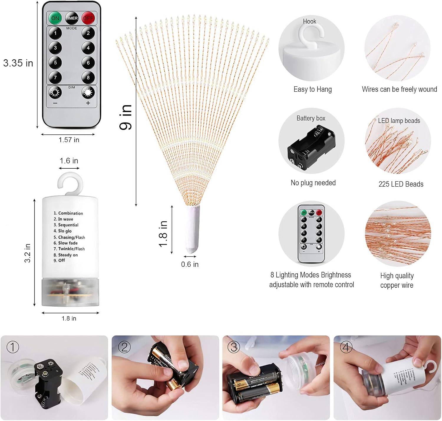 • DIY copper wire lights: flexible copper wire, copper wire fairy lights is easy to bend into any shape you want, such as bouquets, stars, trees, etc. Bursting Star String Lights are ideal for decorations such as gardens,roofs, lawns, fences, weddings, birthdays, parties, Christmas, indoor and outdoor etc