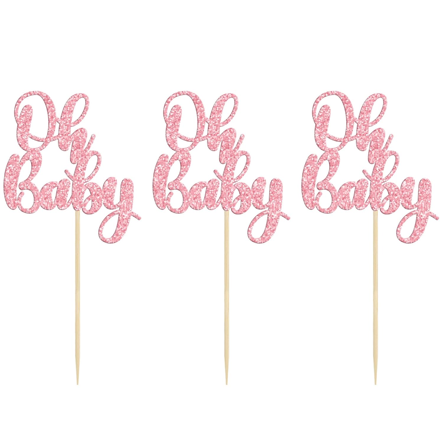 Gyufise 36 Pack Pink Glitter Oh Baby Cupcake Topper Picks for Baby Shower Party Cake Decorations Party Supplies
