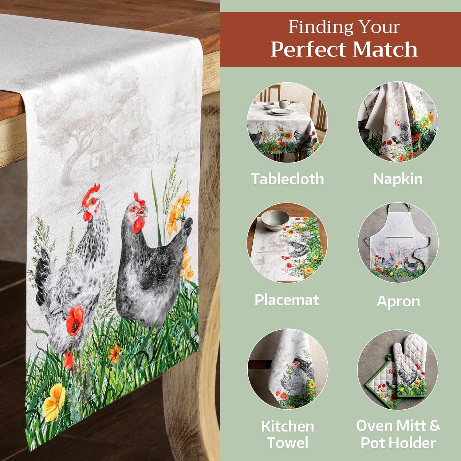 Maison d' Hermine Table Runner 100% Cotton Single Layer Table Runners 108 inches Long Decorative for Home Kitchen Dining Party Wedding Bridal Shower Spring Summer (Basse Cour, 14.50" x 108")